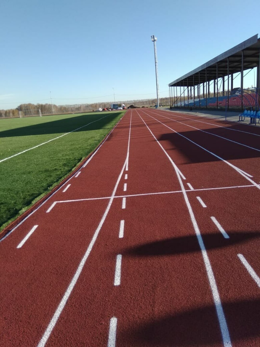 В прошлом году благодаря совместной работе администрации Искитимского района и правительства Новосибирской области, работы были возобновлены. Был подписан новый договор с другим подрядчиком. Выполнено переустройство дренажной системы, исправлены недочеты, постелен новый газон с искусственной травой на футбольном поле, проложены беговые дорожки с резиновым покрытием, установлена универсальная площадка для игр в волейбол и баскетбол, площадка для сдачи нормативов ГТО.