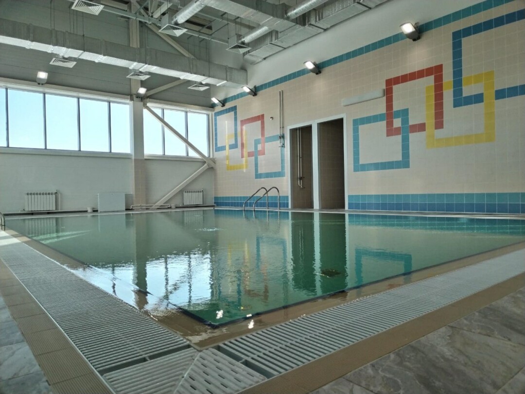 Двухэтажное здание нового бассейна в Багане готово принять взрослых и маленьких пловцов.