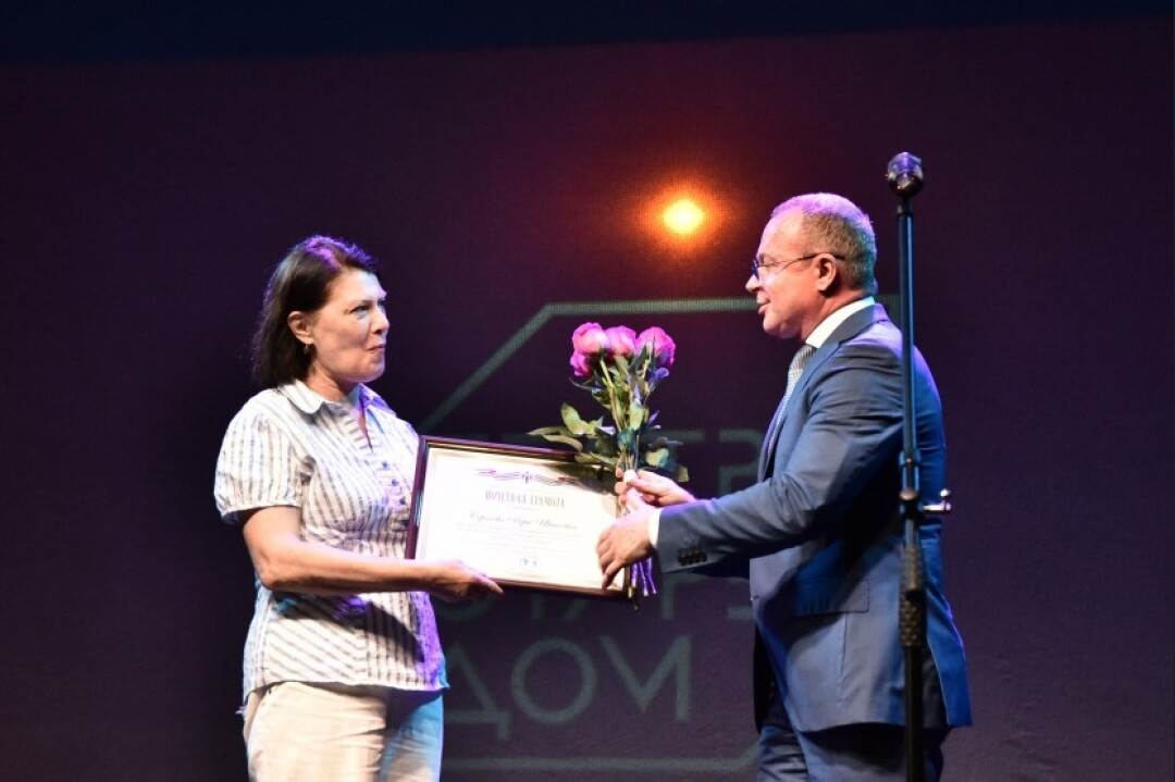 Первый заместитель губернатора Юрий Петухов поздравил коллектив театра с юбилеем, вручил его актерам и сотрудникам Почетные грамоты и Благодарности губернатора Новосибирской области.