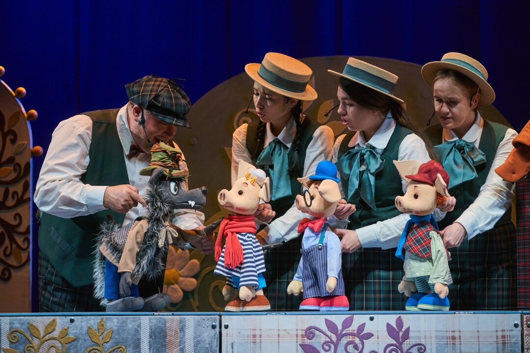 На сцене перед зрителями вырастают домики, оживают куклы и начинается захватывающая история. Каждый из поросят предстаёт со своим характером: серьезный и трудолюбивый Наф-Наф, озорной Ниф-Ниф и ленивый Нуф-Нуф.