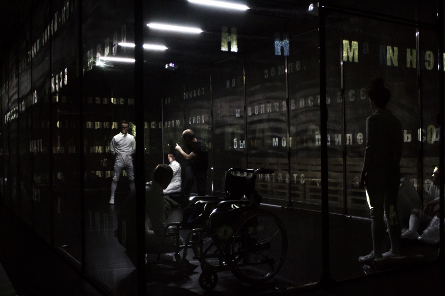 Эту книгу написал знаменитый ученый Стивен Хокинг, который говорит о том, что человек может быть властелином вселенной внутри собственного сознания. А название — «мир в ореховой скорлупе» — это отсылка к цитате Гамлета: «Заключите меня в скорлупу ореха, и я буду чувствовать себя повелителем бесконечности». То есть, объясняя законы, в которых создана наша глобальная вселенная, Хокинг утверждает, что она подобна человеческому разуму. Мне понравилась эта метафора, и я ее использовал, как отправную точку. А с помощью мультимедийной реальности мы попытались раздвинуть рамки пространства до бесконечности, размыть их, благодаря чему пространство интеллекта становится безграничным, когда мы пытаемся создать ощущение, что герой находится в космосе.