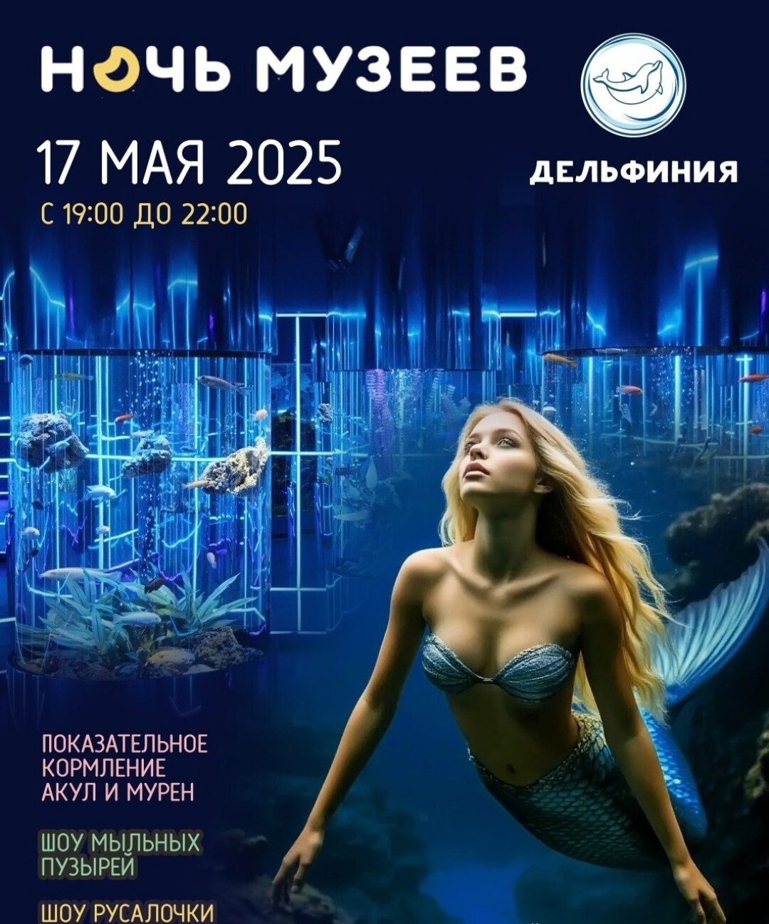 Все желающие смогут прогуляться по океанариуму в вечернее время – понаблюдать за сотнями удивительных рыб, акулами, нерпами, осьминогом и насладиться шоу русалочки.