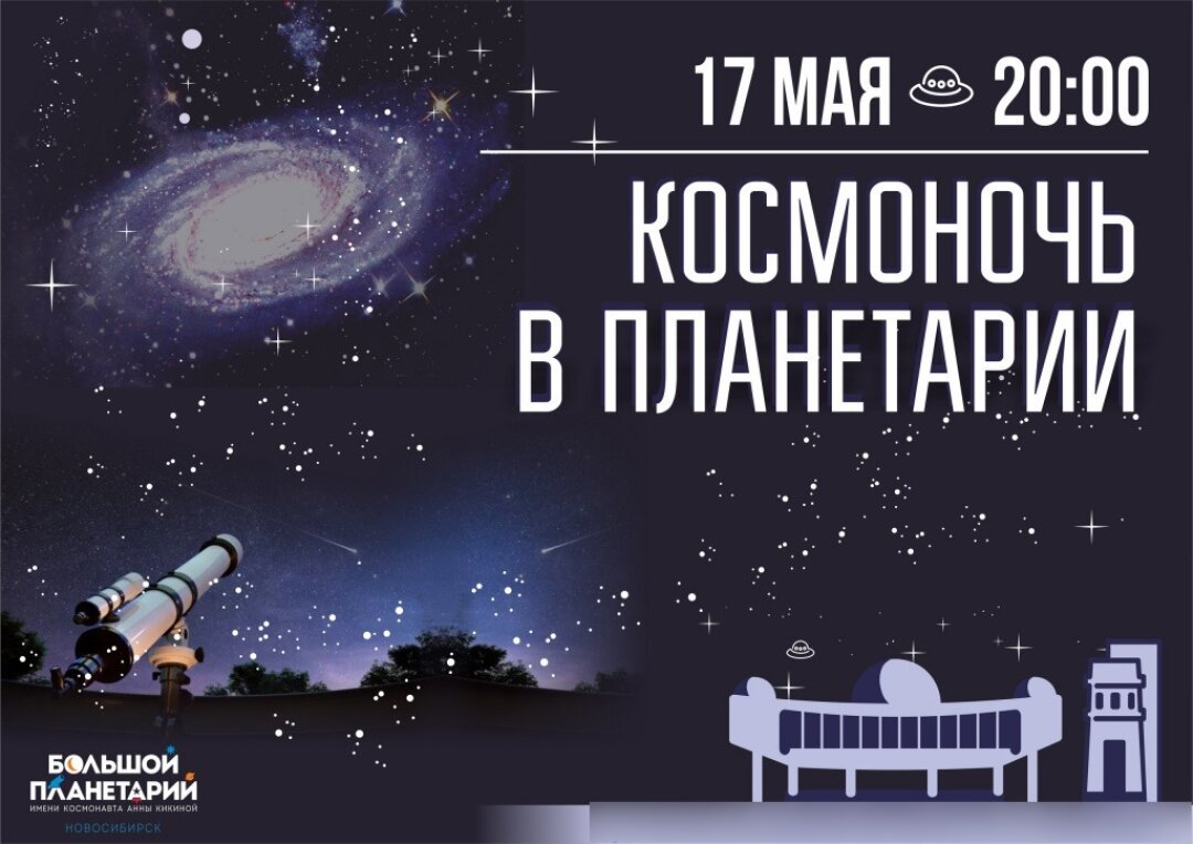 С 23:00 до 00:00 Возле здания музея Солнца. Астрофизик Александр Димов с уникальным телескопом, покажет и расскажет о ярких объектах майского неба. Наблюдательная часть состоится при условии ясного неба! В случае непогоды будет организована встреча в актовом зале в лекционном формате.