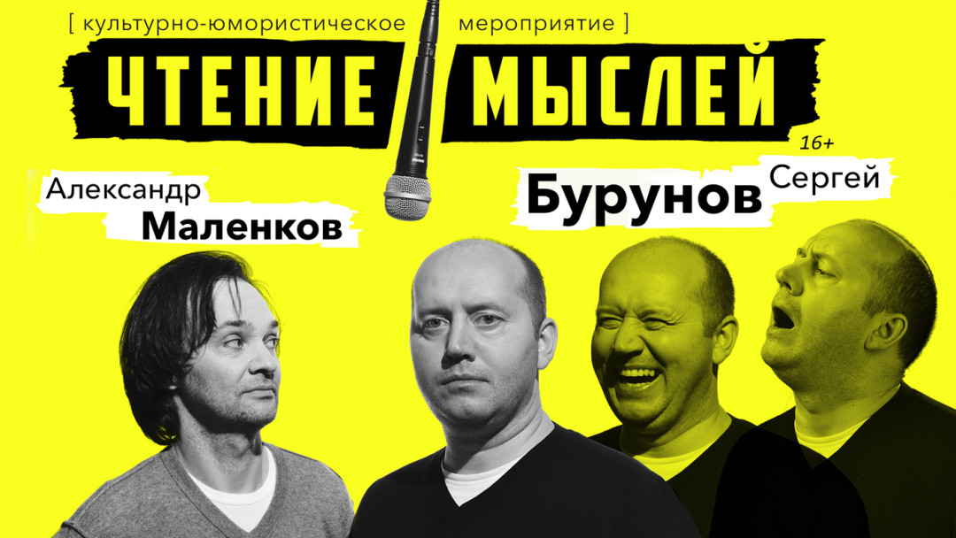 Проект «Чтение мыслей» Сергея Бурунова и Александра Маленкова — это новый формат, смесь стендапа, литературных чтений, театра и кино, интерактивное представление, в котором юмористические монологи перемежаются общением с публикой и видеороликами.