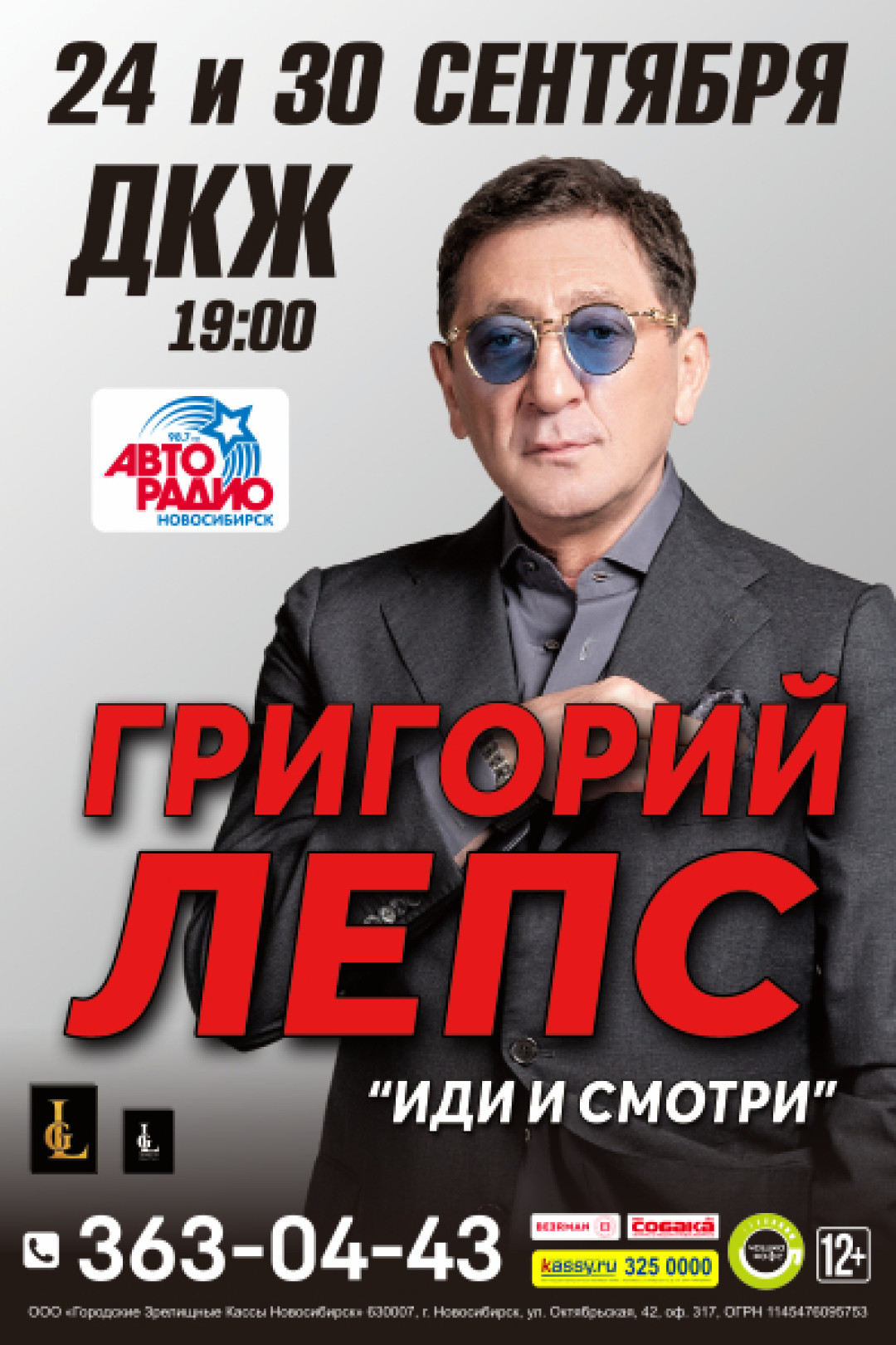 Заслуженный артист России, обладатель премий «Золотой Граммофон», «Песня года», «Шансон года», музыкальных наград телеканалов МУЗ ТВ и RU TV – Григорий Лепс вновь выступит в Новосибирске 24-го и 30-го сентября во Дворце культуры железнодорожников!