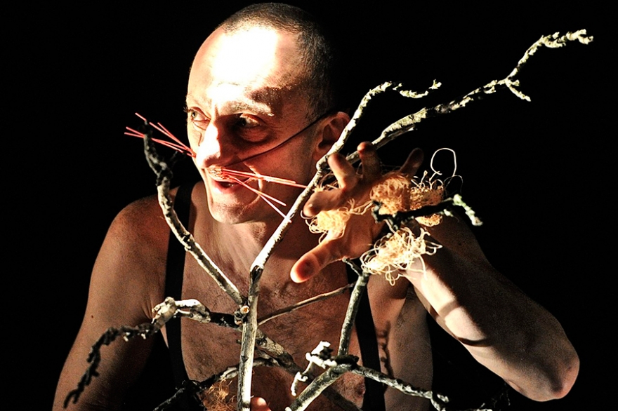 Два клоуна уснули однажды на развалинах древнего амфитеатра, а проснувшись, кинулись пересказывать на птичьем, в танце, пантомиме ошметки пестрых атмосфер, рисованные пеплом тени, почти сюжеты и персонажи, диковинно нагрянувшие из ниоткуда в никуда.