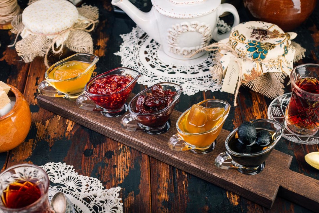 Зимний бестселлер - баранину с айвой, а также поучаствовать в "Фестивале варенья". Вам предстоит нелегкая задача - сделать выбор из 18 видов варенья (тыква, роза, тархун, мята, грецкий орех, кизил, белая черешня, айва, арбуз, баклажан, мандарины) и собрать свой собственный сет из 5 видов.