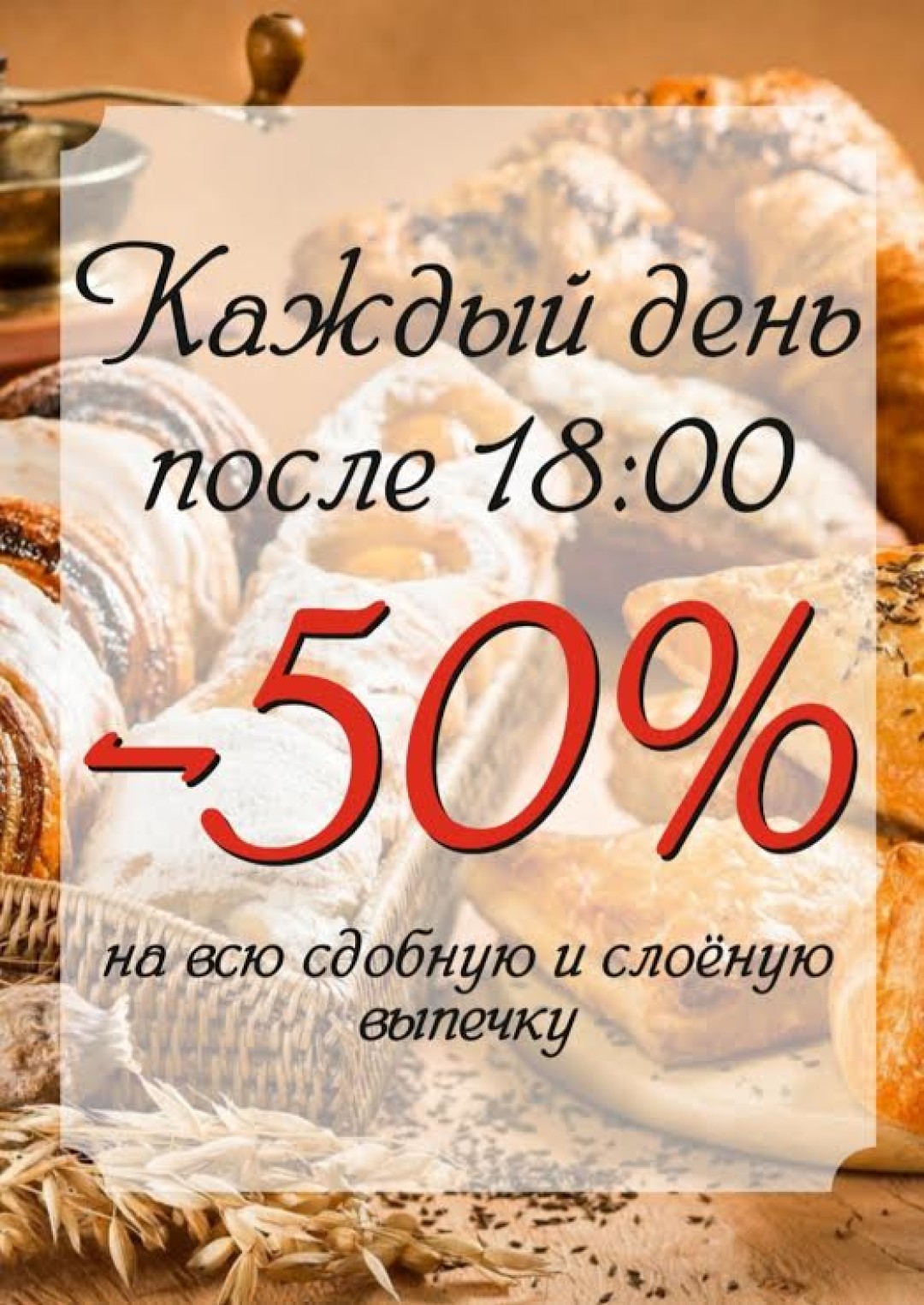 -50% на сдобную и слоеную выпечку с 18:00 до 21:00