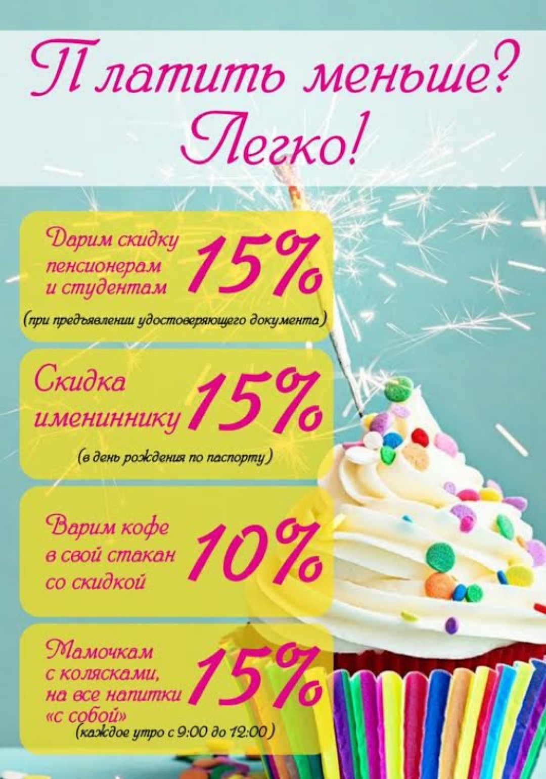 -15% - Мамочкам с колясками, на все напитки "с собой"