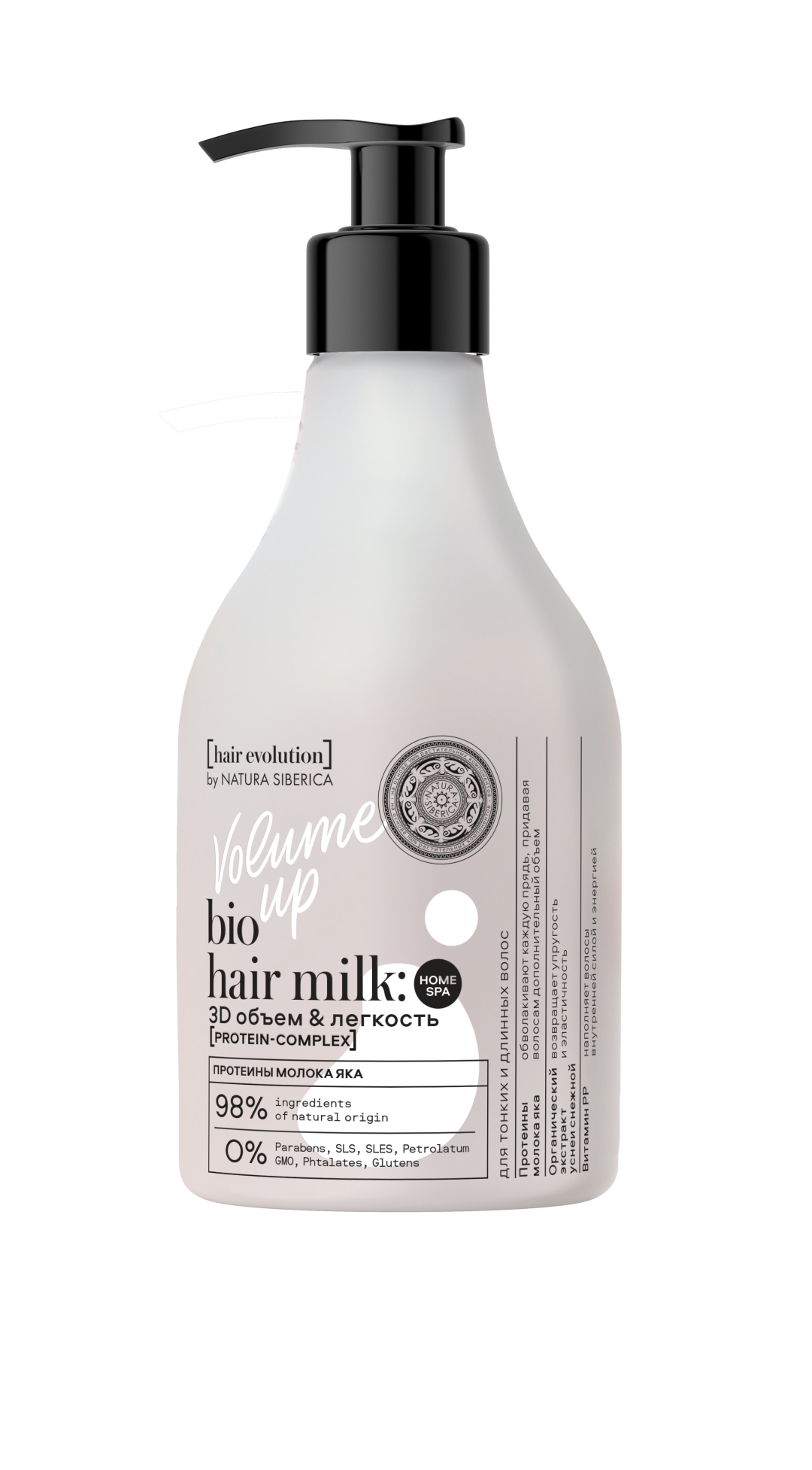Volume up – 3D объем и легкость для тонких и длинных волос. Протеины молока яка обволакивают каждую прядь, придавая волосам дополнительный объем без утяжеления. Органический экстракт уснеи снежной возвращает упругость и эластичность. Витамин PP наполняeт волосы внутренней силой и энергией.