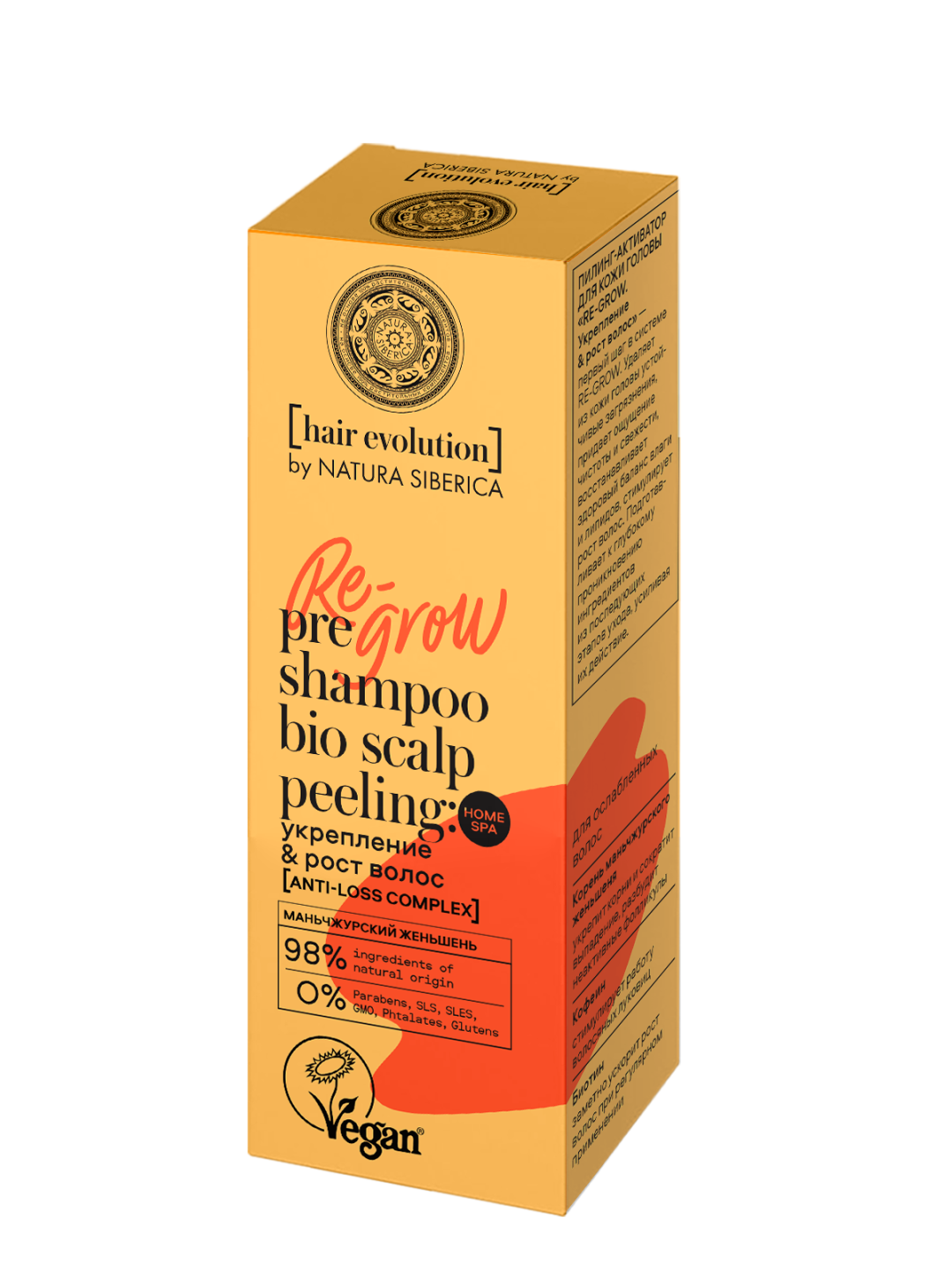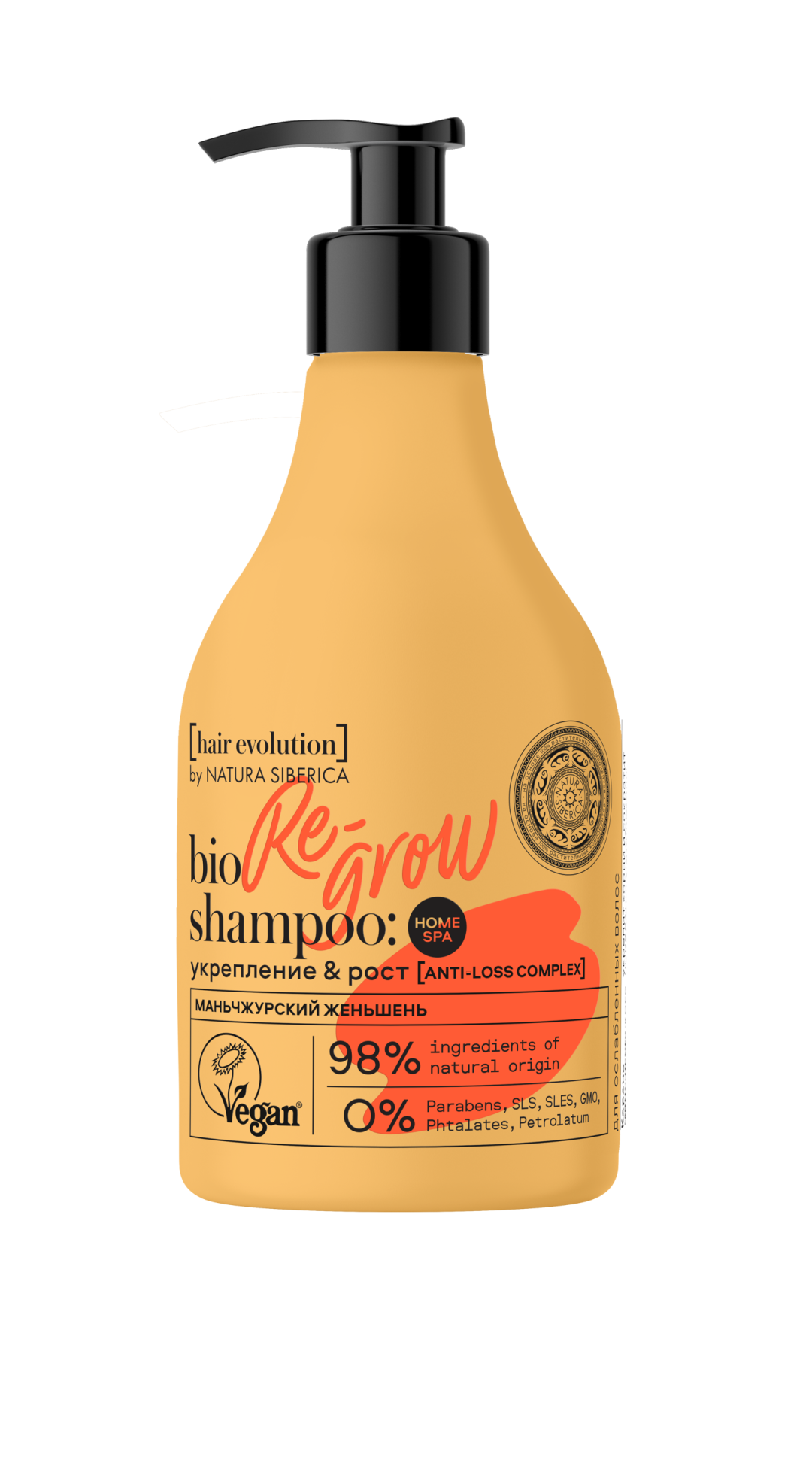 Re-grow – укрепление и рост для ослабленных волос. Корень маньчжурского женьшеня укрепит корни и сократит выпадение, разбудит неактивные фолликулы. Кофеин стимулирует работу волосяных луковиц. Биотин заметно ускорит рост волос при регулярном применении.