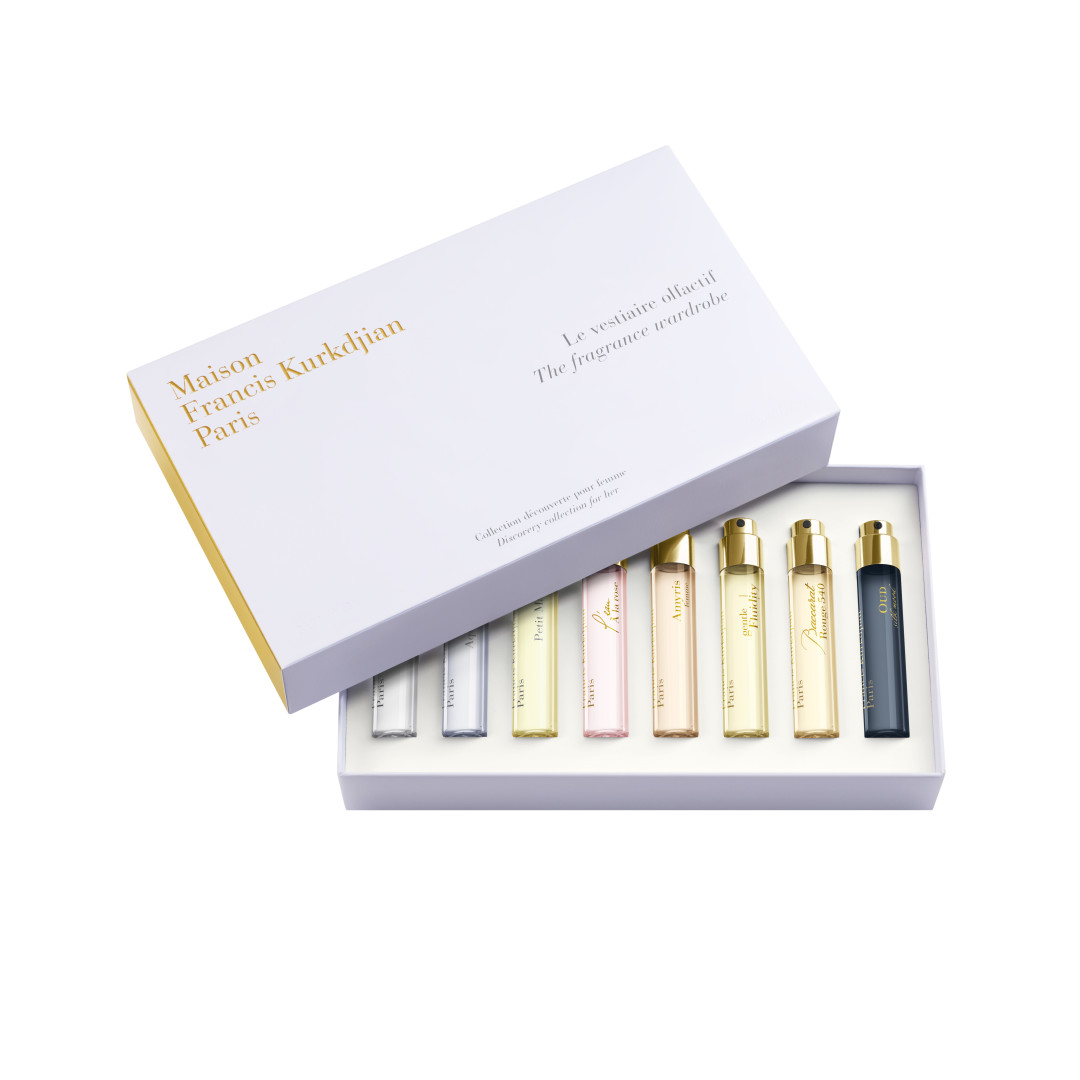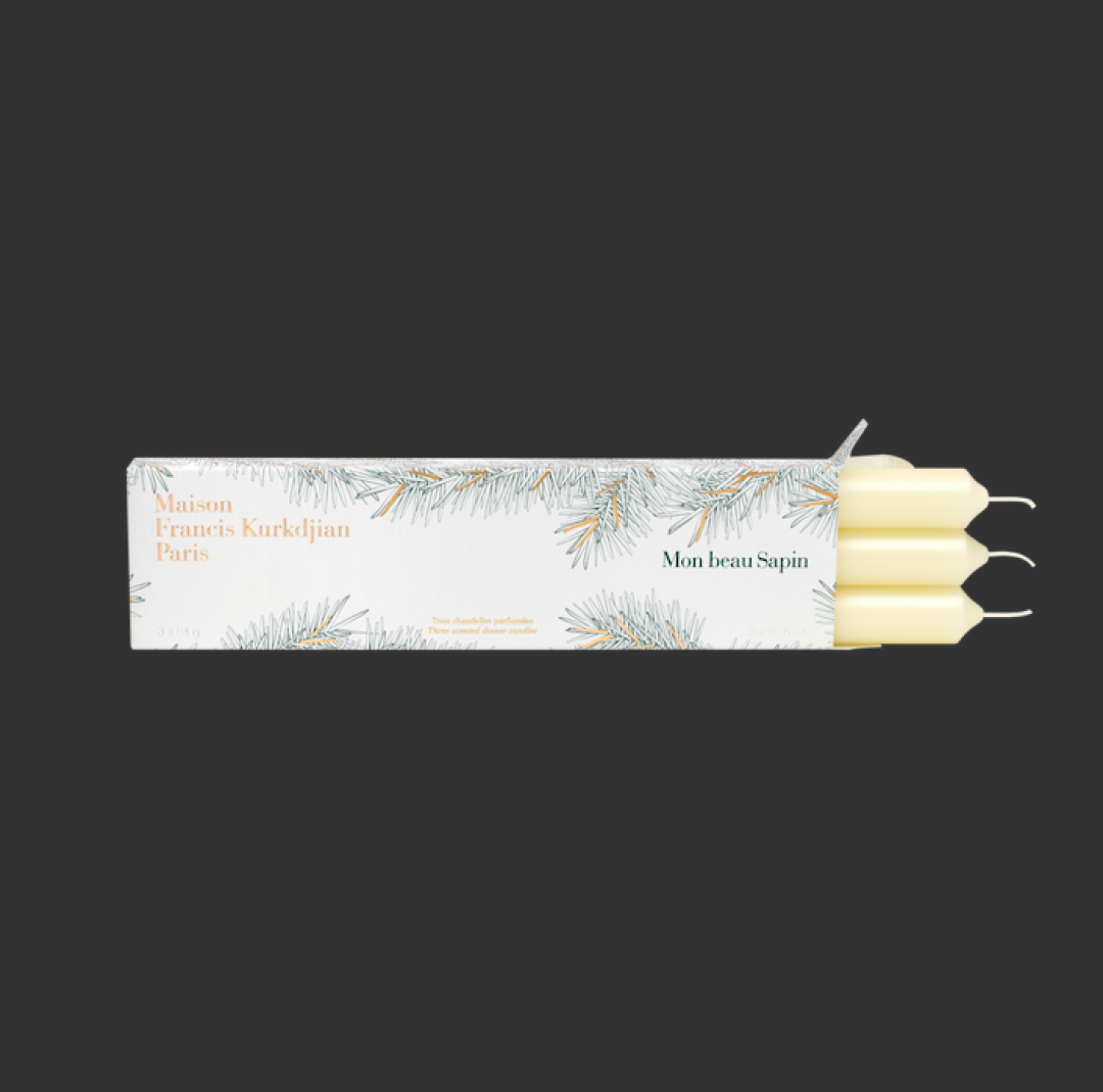 Парфюмерный бренд Maison Francis Kurkdjian создал коллекцию специально к Новому году, чтобы усилить (или помочь появиться) праздничное настроение. В нее вошли восемь ольфактивных женских и мужских ароматов в небольших флаконах, лимитированный набор из трех ароматизированных обеденных свечей от парфюмера Франсиса Кюркджяна, праздничные свечи с запахом Рождественской елки, украшенные золотой шелкографией, металлизированными элементами и узором в виде сосновых игл. Также в коллекции есть масло для тела и дымка для волос.