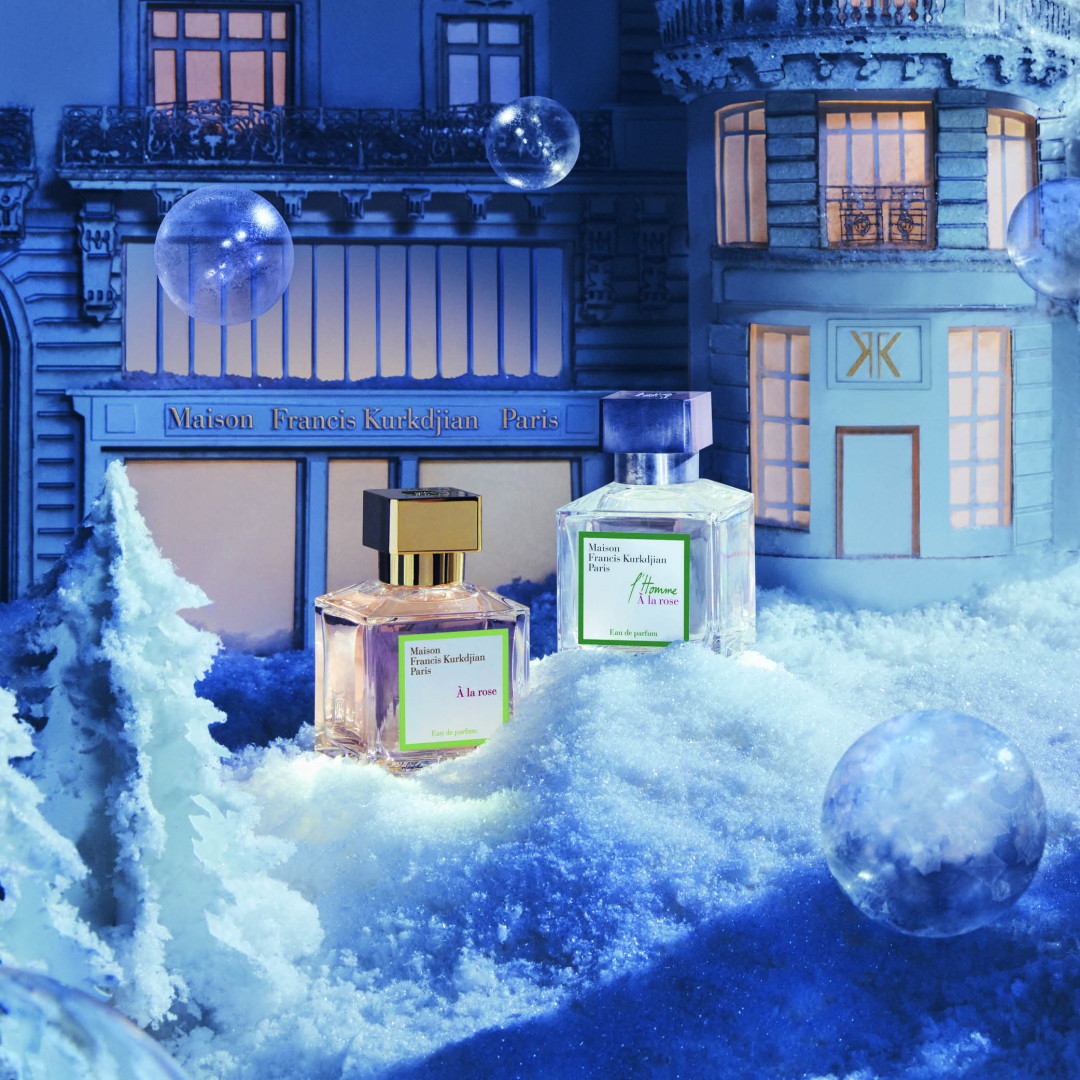 Все новинки дополняет праздничная упаковка с узором из матовых пузырей, которую разработал сам Франсис Кюркджян в этом году, а создала творческая студия Maison Francis Kurkdjian.
