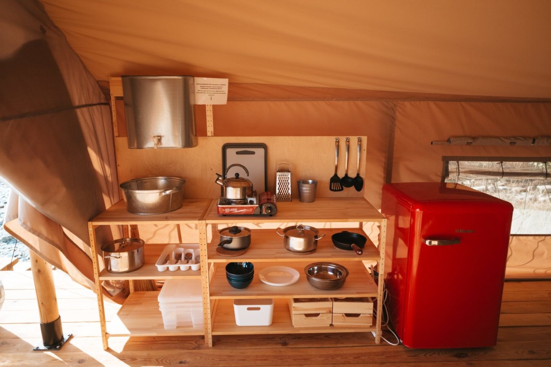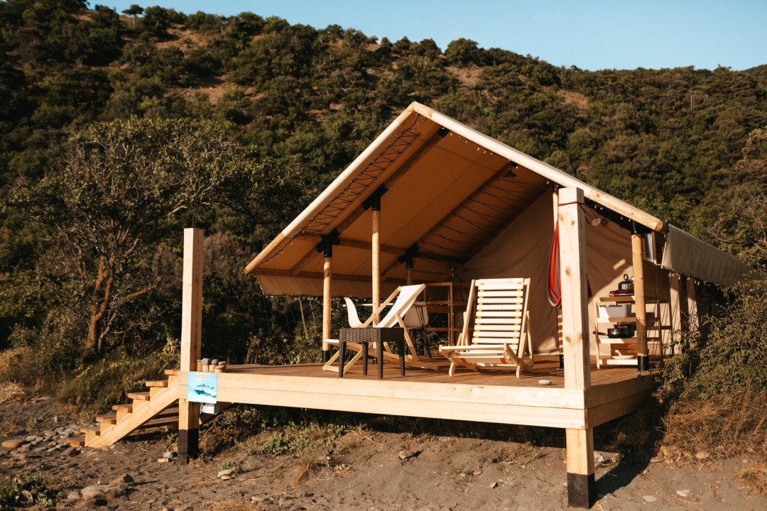 Номерной фонд состоит из семи сафари-тентов, на два-четыре гостя каждый. Сафари-тент укомплектован спальными местами (кровати и дополнительные места), походной кухней (газовая плитка, посуда, умывальник), холодильником и вентилятором, обеденным столом, стеллажами для хранения, гамаками и шезлонгами. Санузлы и душевые реализованы как отдельный блок. Террасы и видовые окна каждого номера ориентированы на море.