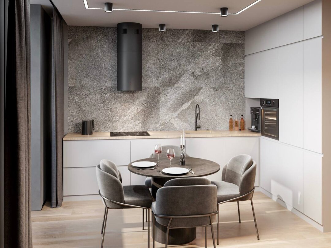 Акцент на линии и пропорции визуально расширяет пространство, делая его масштабным и стройным.