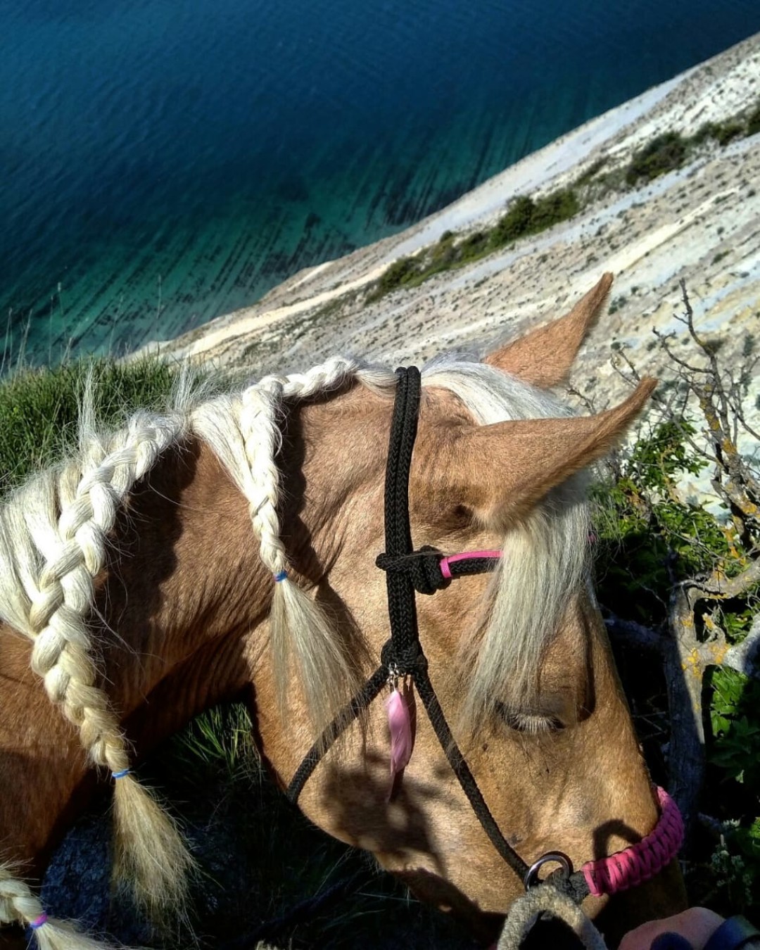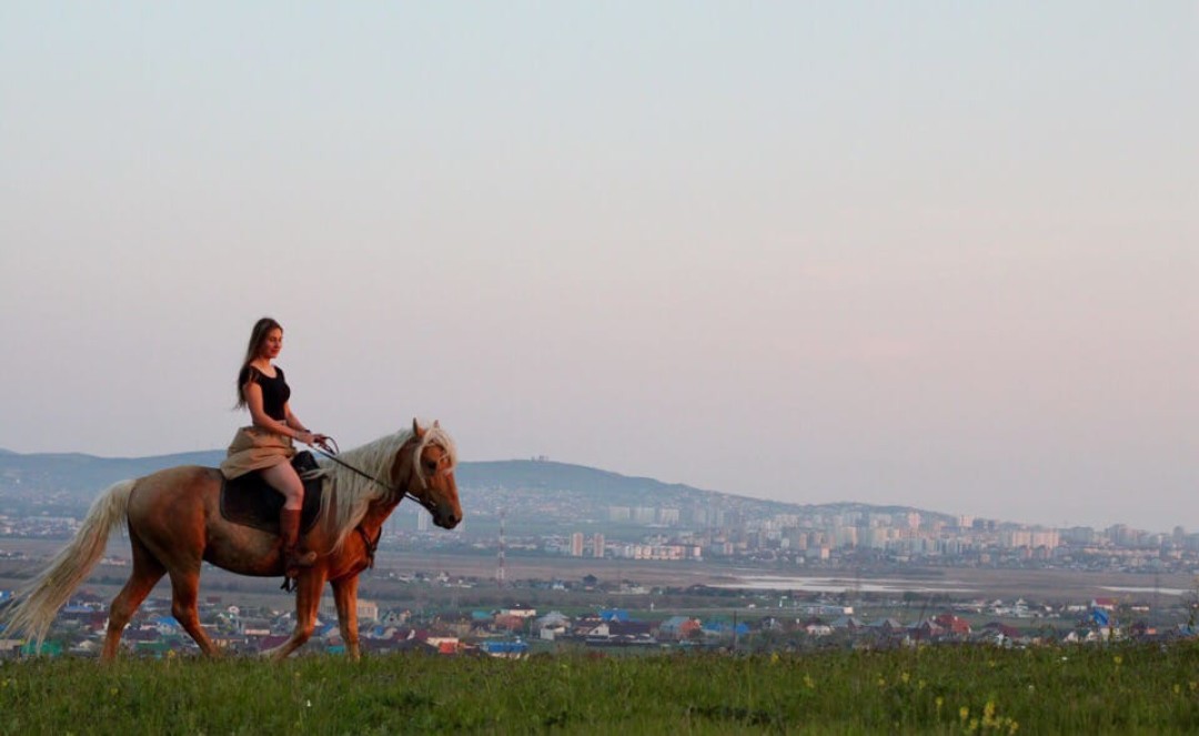 Это проходит так: приезжает человек, я седлаю жеребца, провожу инструктаж, сажаю человека на Помпея, он релаксирует, расслабляется, любуется видами, разговаривает со мной, гладит коня, а я веду жеребца в поводу.
