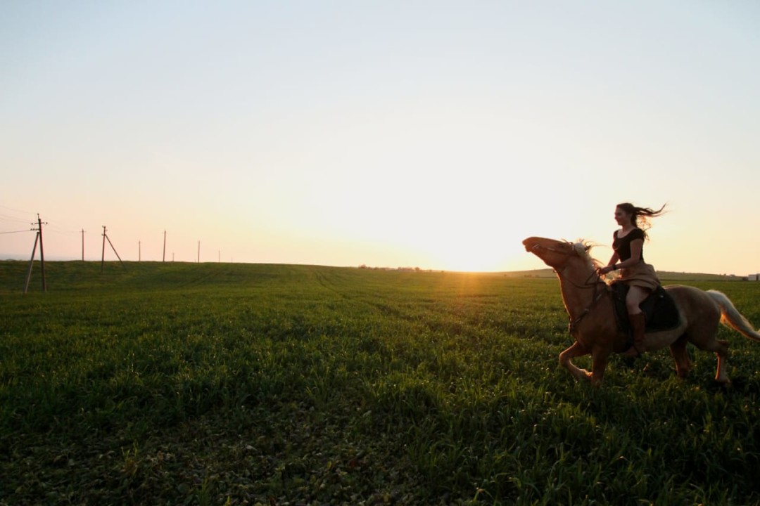 На следующий же день я взяла велосипед и поехала искать лошадок. По «разговорчивой» тропе людей добралась до окраины города, где обитали они - кого-то седлали, кого-то ловили, кто-то спал, кто-то ел. После переговоров с сотрудником конюшни меня взяли на работу, на очень грязную работу... Ежедневно я занималась лошадьми и прокатом, но никто не торопился сажать меня в седло. Спустя нескорое время пришло разочарование в моих наставниках и я перешла в другую конюшню, где в первый же день меня посадили на чубарую лошадку по имени Рома и отправили на прокат. Здесь я узнала первую езду без седла, впервые искупалась на коне, впервые прыгнула без седла и познала карьер...