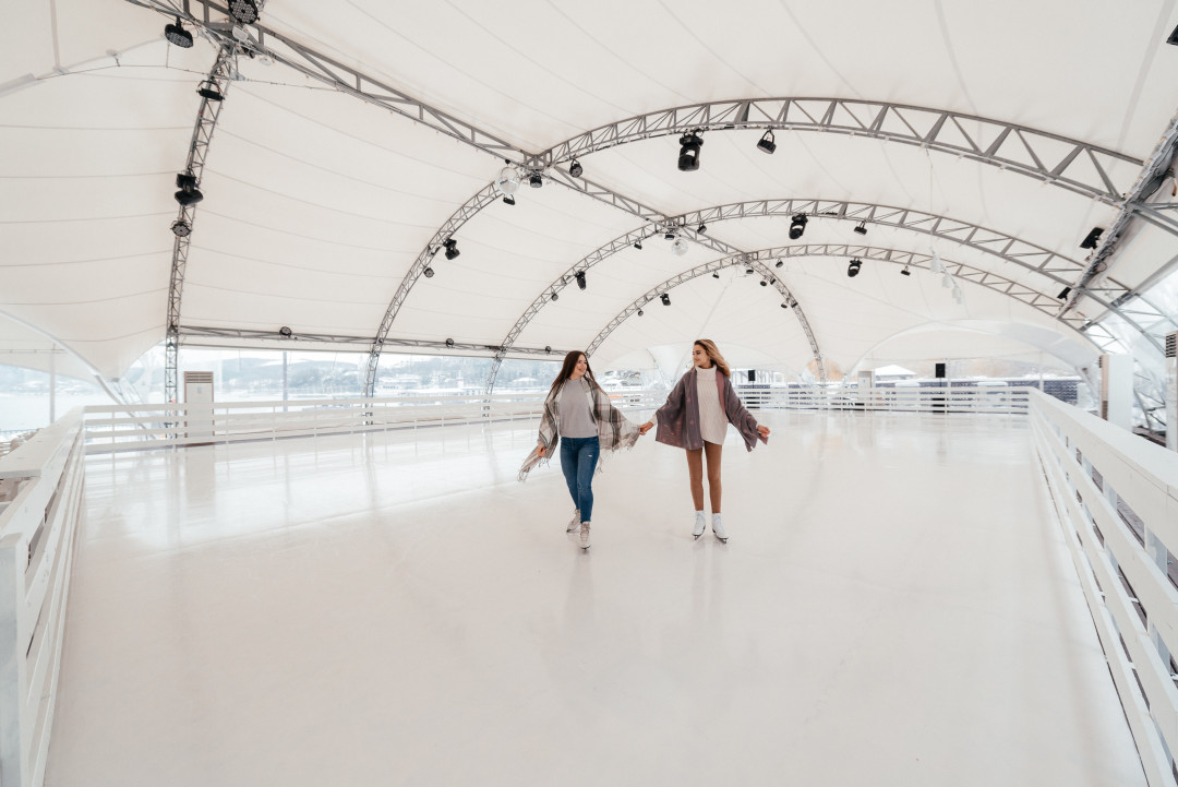 Время работы катка – с 11.00 до 21.40 ежедневно, но 1 января 2021 года аттракцион начнет работу с 14.00. Сеансы катания – 40 минут, между ними двадцатиминутный технический перерыв. Коньки можно использовать свои, а для тех, у кого их нет, будет работать прокат. Катание доступно с пятилетнего возраста.
