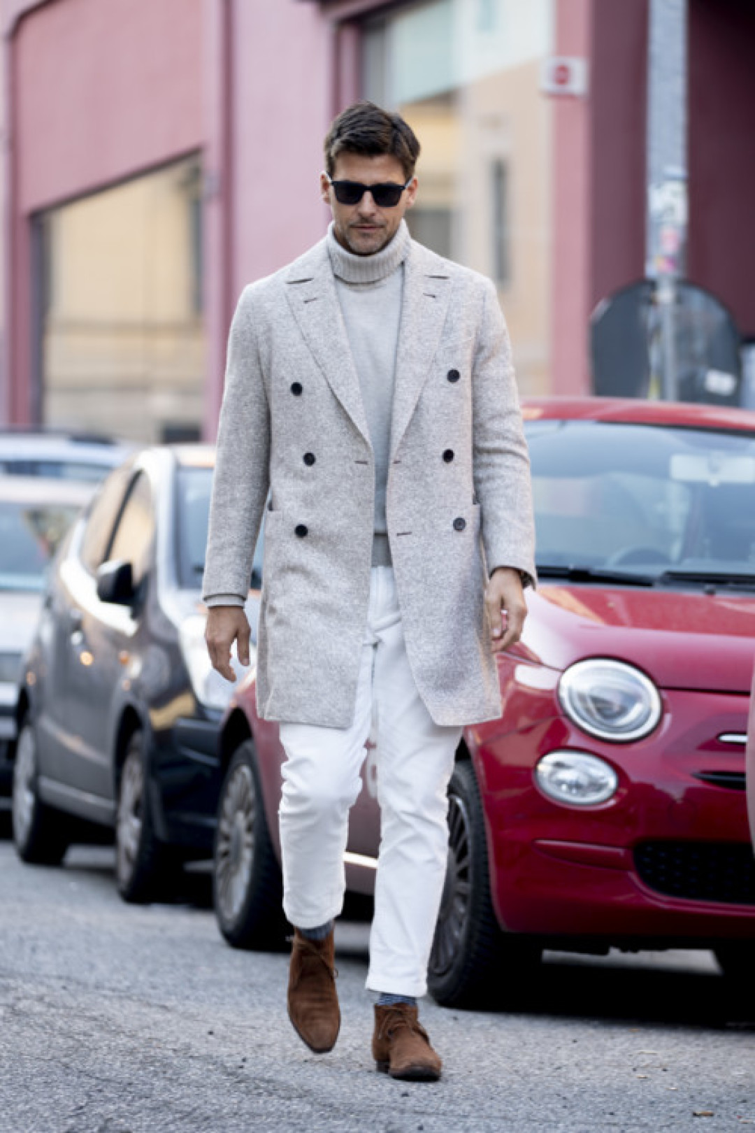 Среди верхней одежды замечены: шерстяные двубортные пальто, дутые куртки, цветные эко-шубы и пальто-коконы, а также уютные пальто в бежевой цветовой палитре или в клетчатый узор.