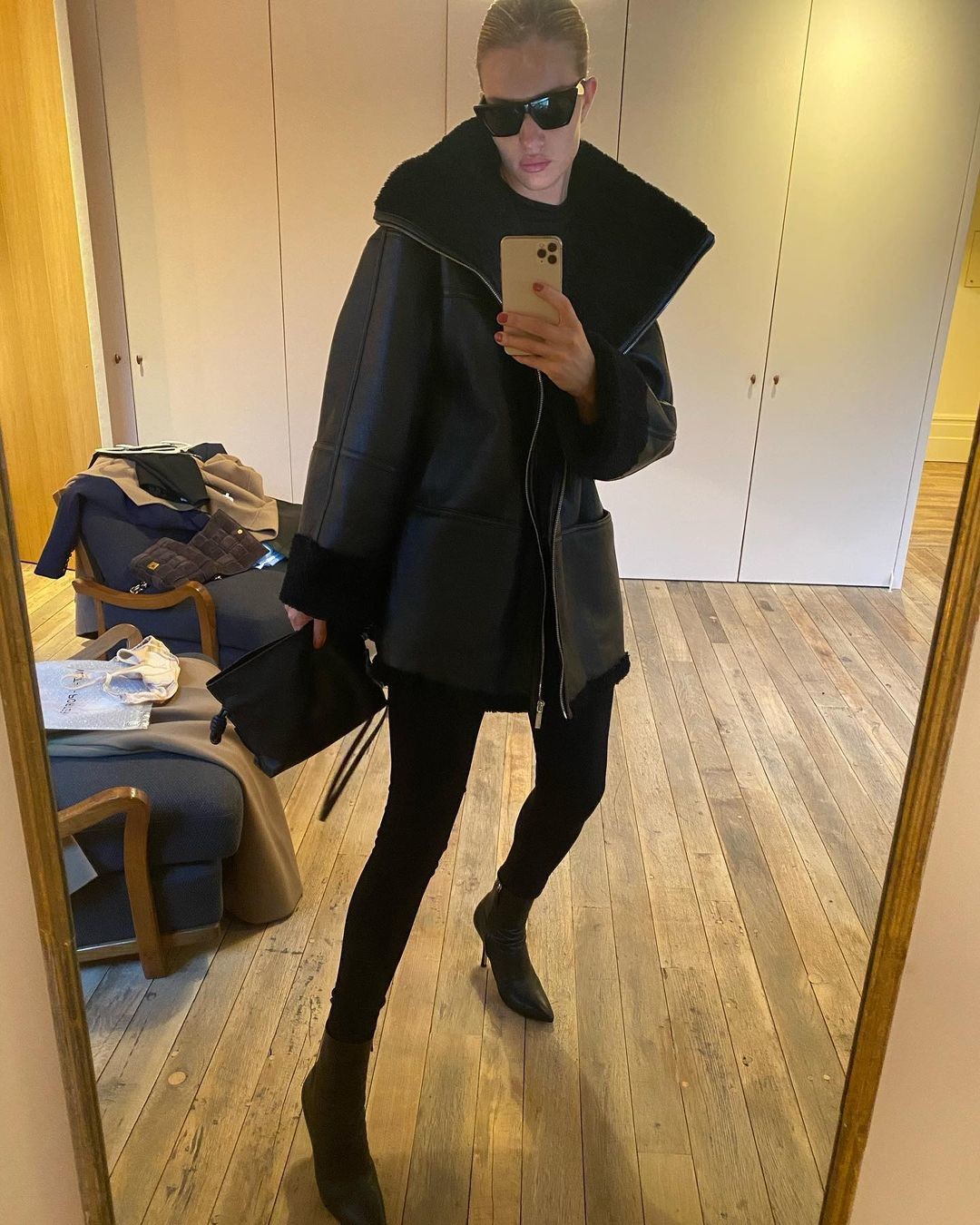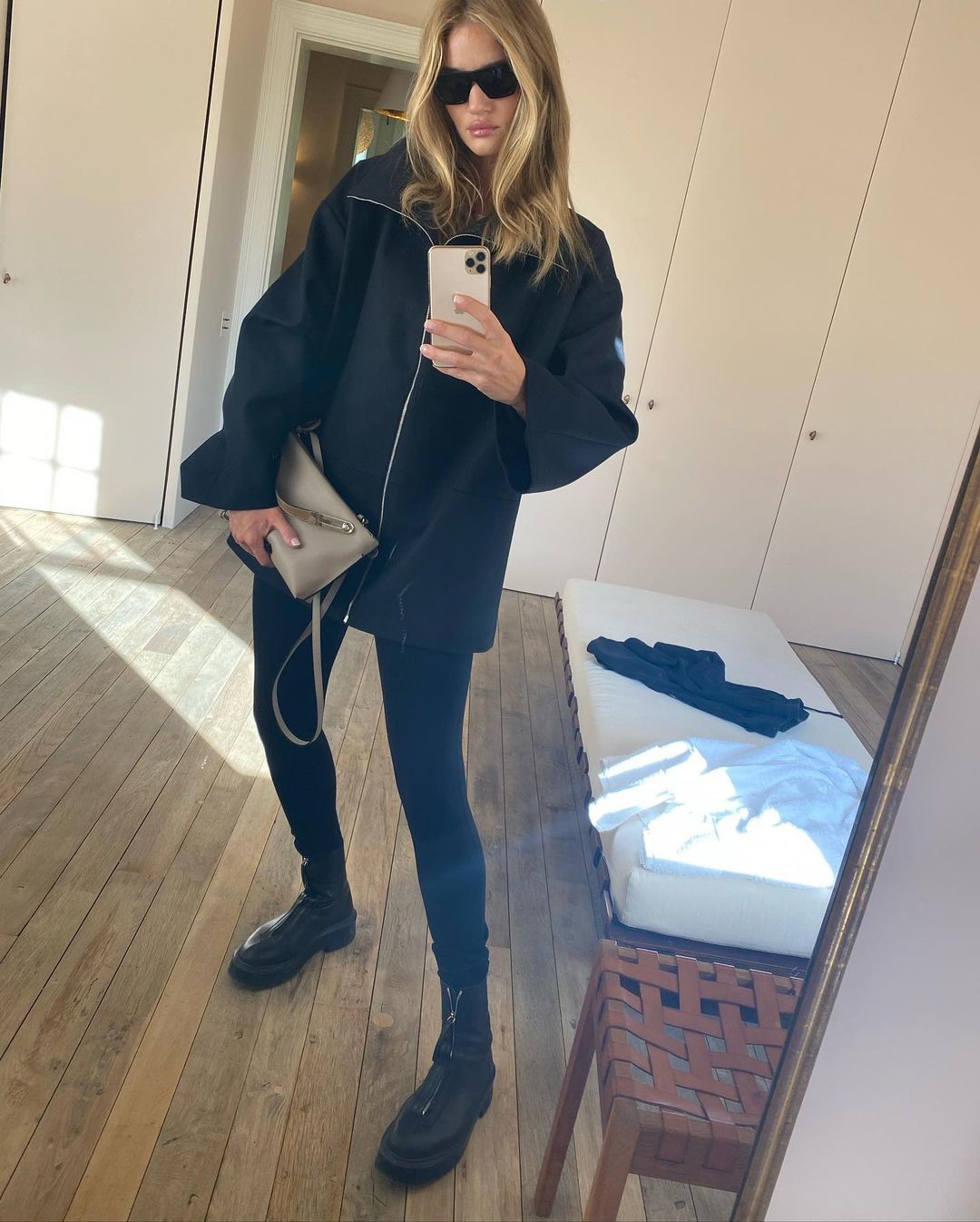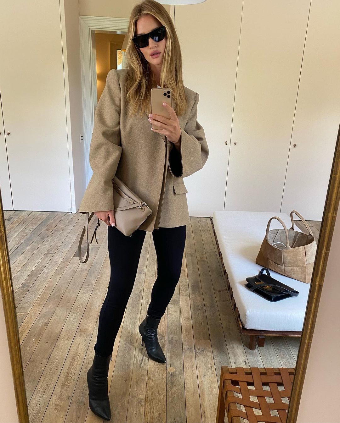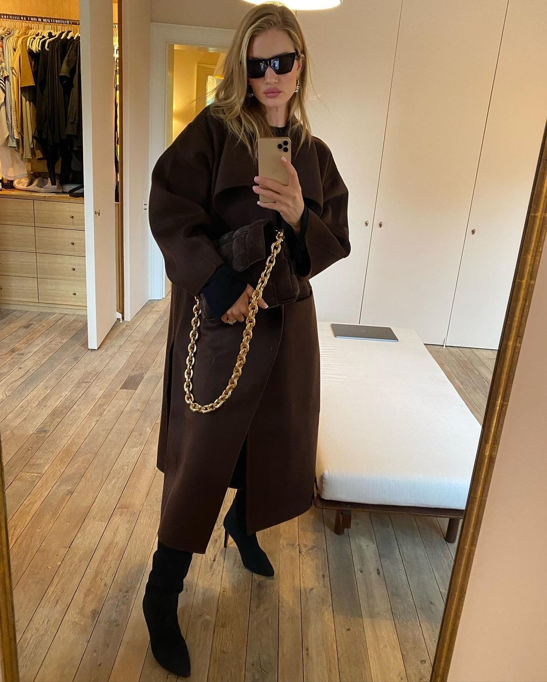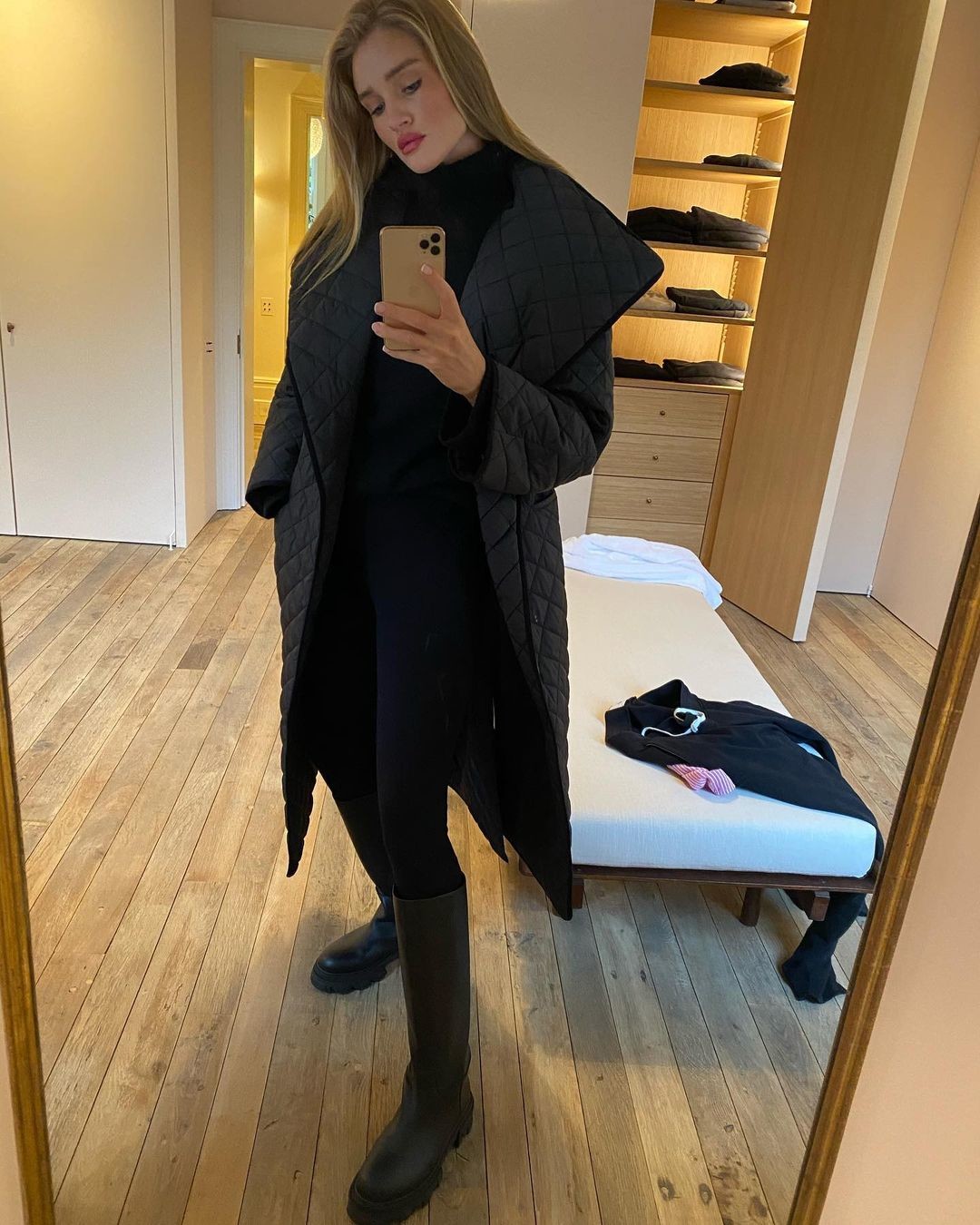 Рози Хантингтон-Уайтли серию снимков, на которых запечатлен ее осенне-зимний гардероб - стеганое пальто, ботинки-челси, резиновые сапоги, модные сумки Bottega Veneta и многие другие вещи в нейтральной цветовой гамме.