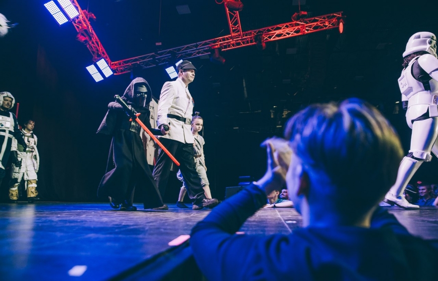 Сначала я переживала, что он не будет ходить один по сцене, поэтому самостоятельно шила парные костюмы для него и для девочки — например, к образам Энакина и Падме из «Звездных войн». Сейчас он уже может выступать один, без ужимок фотографируется с другими персонажами, а также интересуется их костюмами — большой любитель все посмотреть и потрогать.