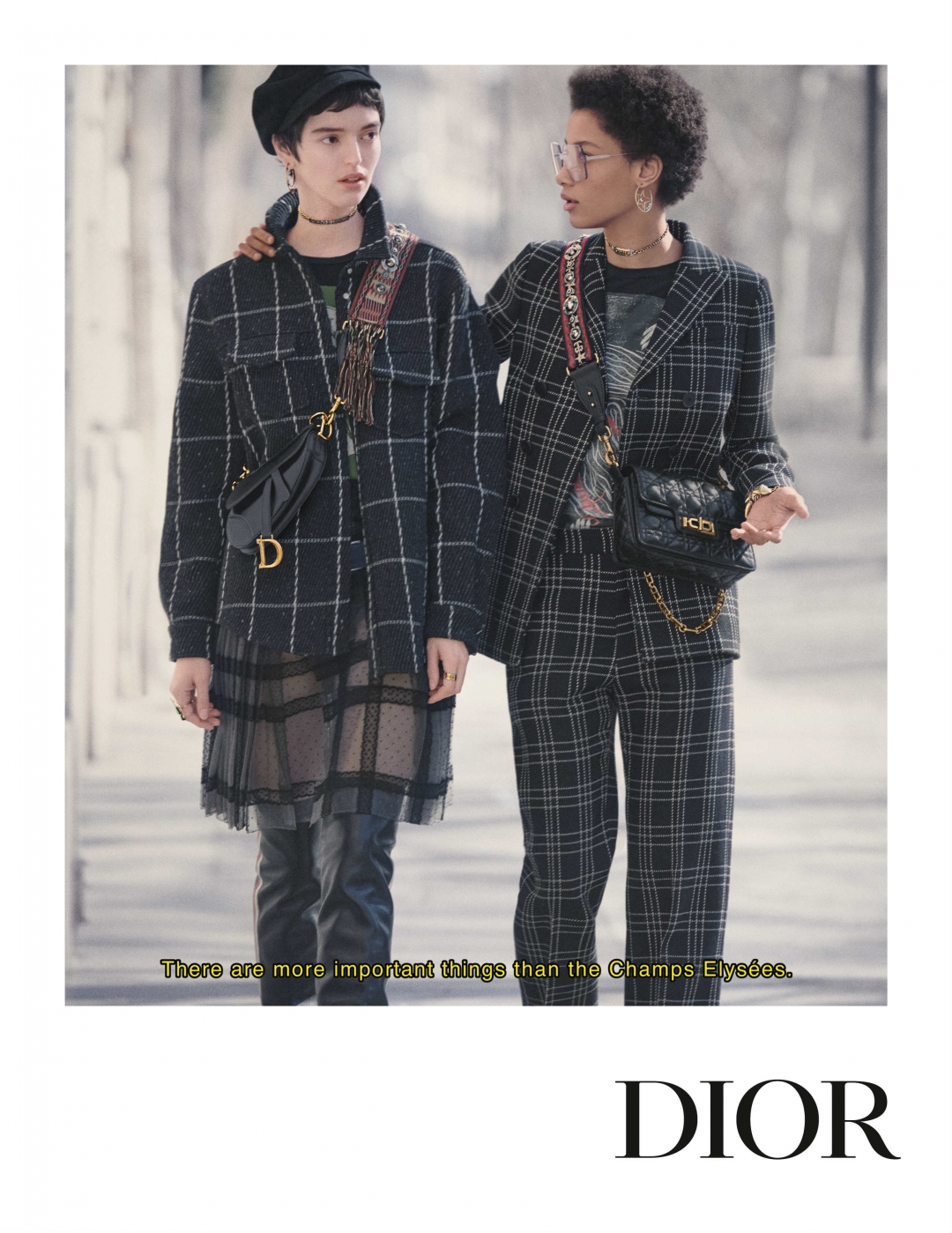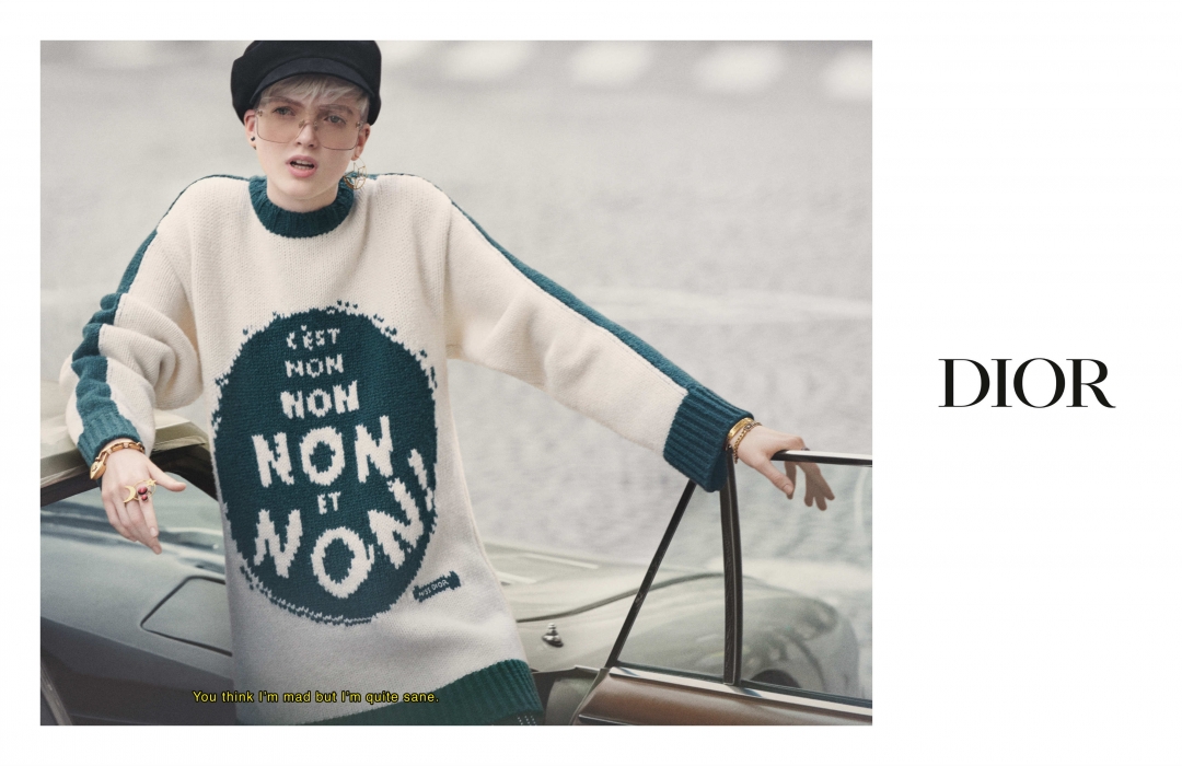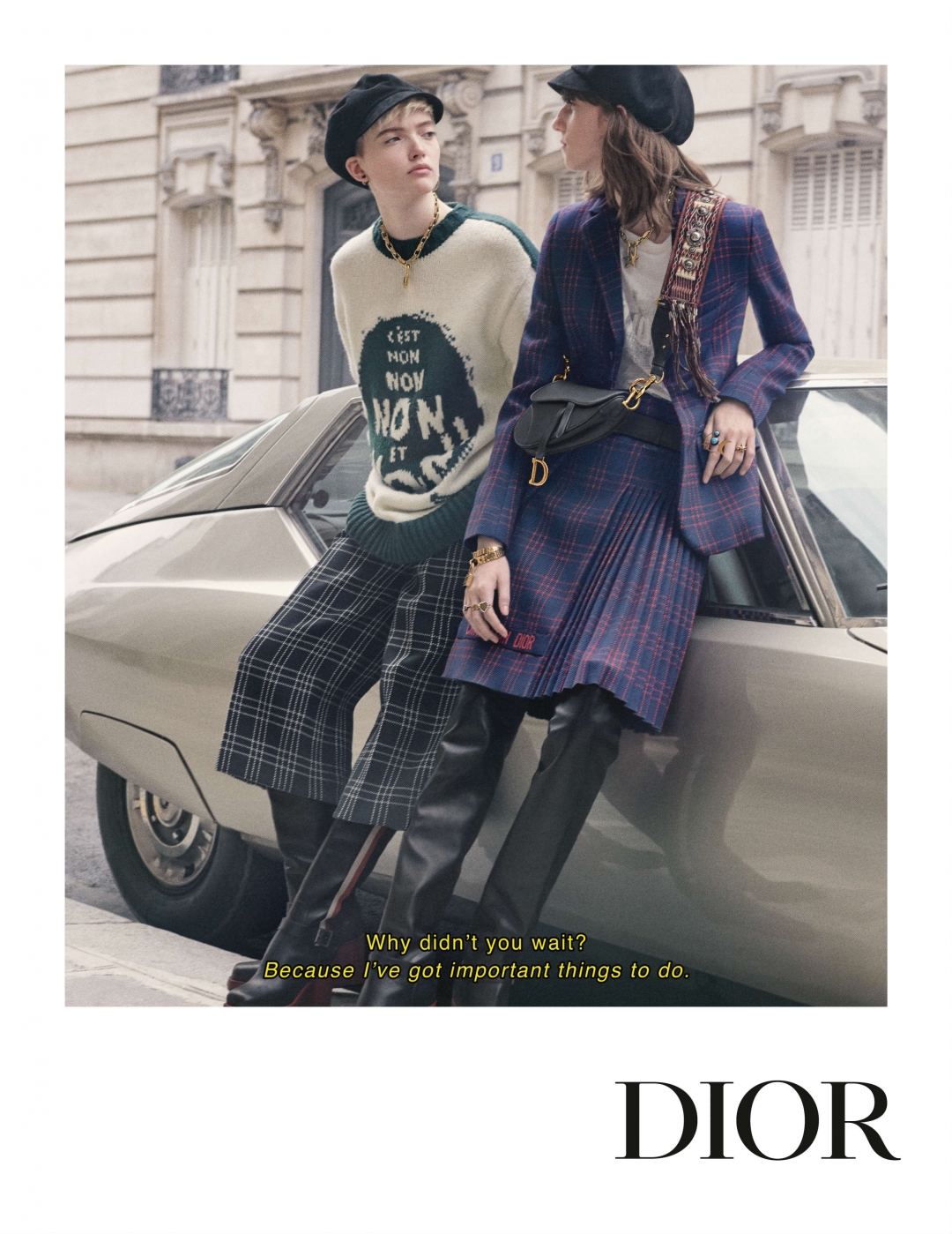 Dior показал кадры из рекламы осенне-зимней коллекции, вдохновленной событиями майских протестов 1968 года во Франции. Фотографии авторства Памелы Хансон — с сумкой-бестселлером Saddle, тартановой юбкой, клетчатым костюмом и свитером с лозунгом C'est Non, Non, Non et Non на Рут Белл — сопровождали субтитры из фильма «Женщина есть женщина» Жана-Люка Годара. «Я всегда любила фильмы этого режиссера, его способность показывать красивый женский характер, — рассказала дизайнер Dior Мария Грация Кьюри. — Героини Годара — современные девушки, балансирующие между традицией и желанием выбраться, между своими стремлениями, мечтами и реальностью».