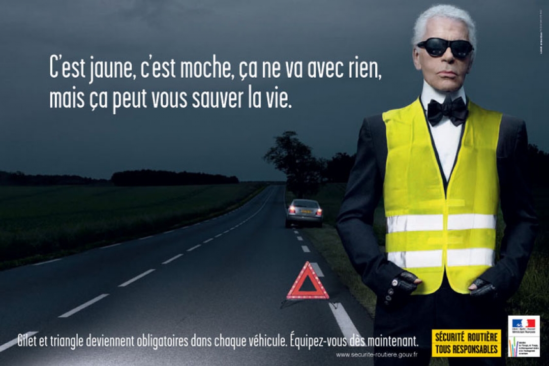 Урбанистические жилеты со светоотражателями, появившиеся в мужских коллекциях Heron Preston, Palm Angels и Louis Vuitton на будущий сезон, Карл Лагерфельд пропагандировал еще 10 лет назад, сочетая вещь с black-tie костюмом. По просьбе французской инспекции дорожной безопасности дизайнер снялся в социальной рекламе со слоганом: «Он желтый, он уродливый, он ни с чем не сочетается, но он может спасти вам жизнь». Карл делал модной даже самую обычную вещь, все сразу захотели выглядеть так же, но решились на это только сейчас — с «чуть» запоздалой, но массовой поддержкой его коллег.