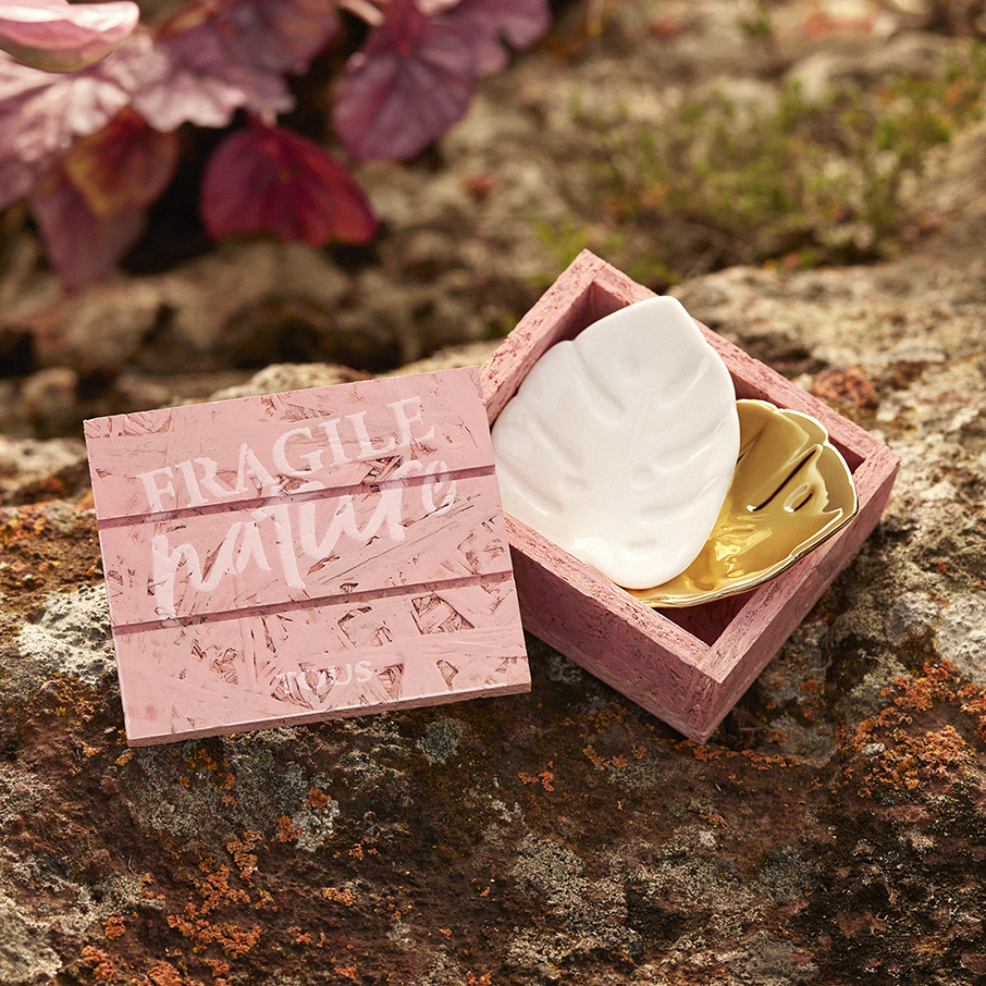 Испанский ювелирный дом запустил новую акцию — дарит керамический сет для хранения украшений. Чтобы получить функциональный и красивый подарок, нужно сделать покупку в TOUS до 30 апреля (подробности акции можно узнать у консультантов в бутиках). В сет входят две подставки в виде листьев монстеры, а упакованы они в деревянный бокс нежно-розового цвета.