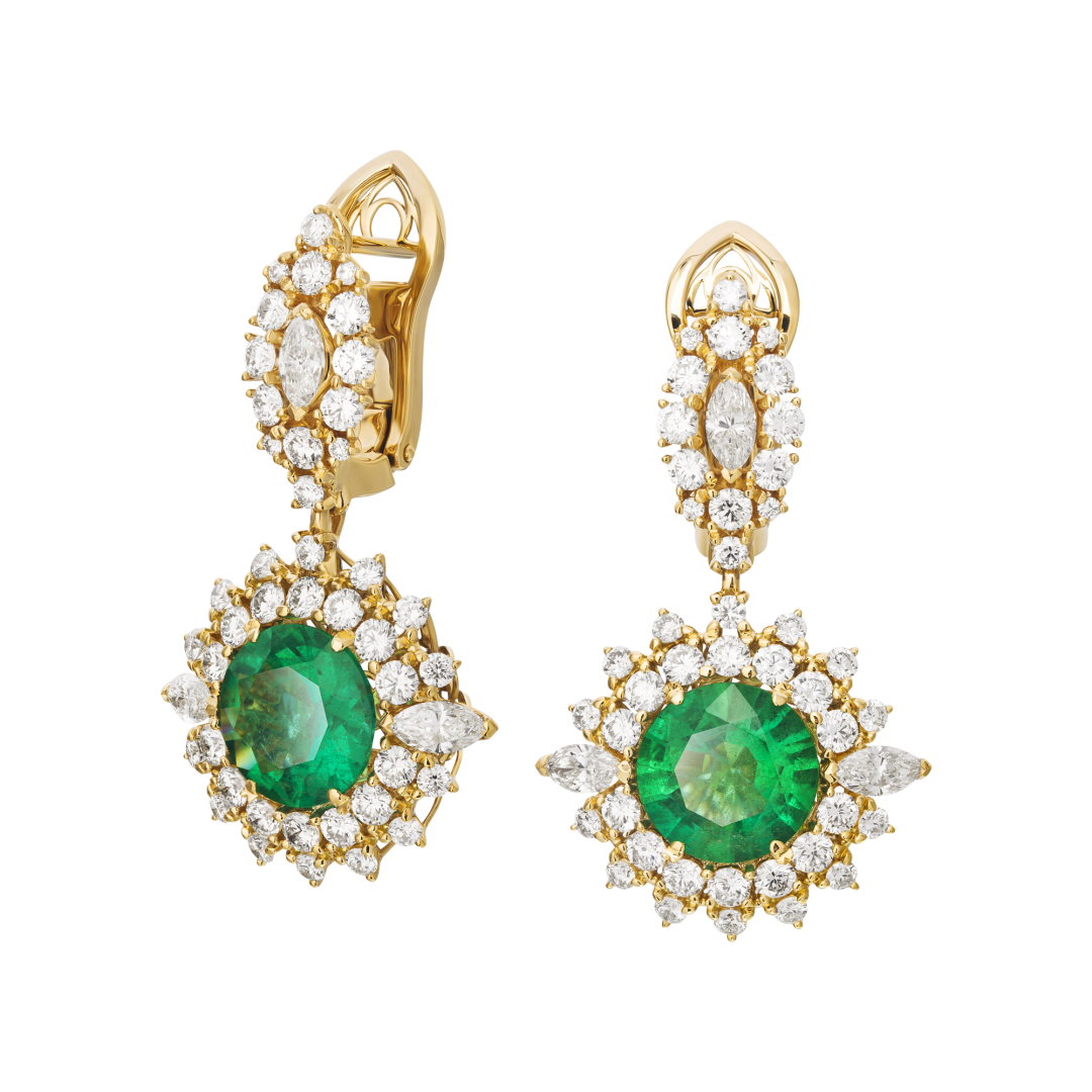 Взрыв 90 бриллиантов — круглых и в огранке маркиз — вызван явлением миру двух отличных (инвестиционных!) замбийских изумрудов общим весом почти в 5 карат.