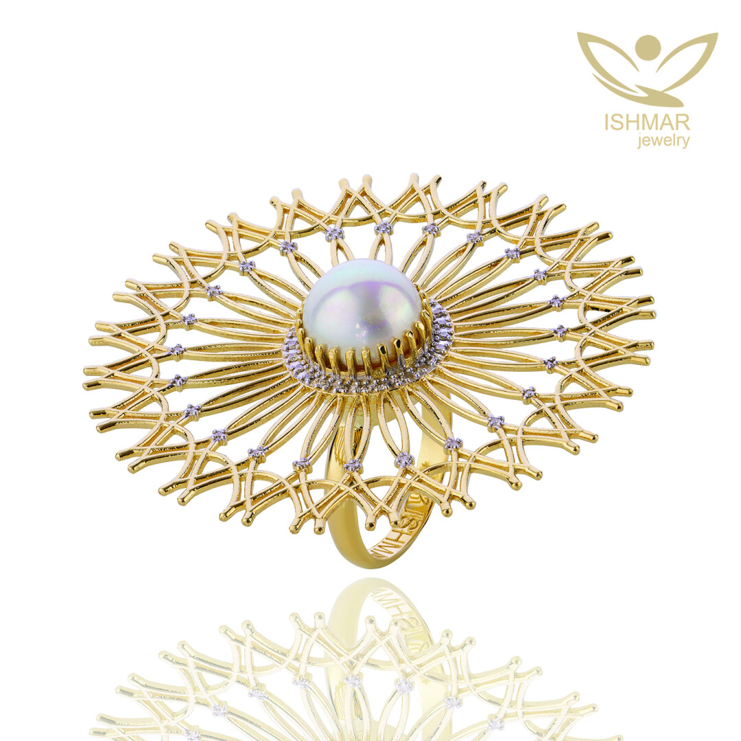 Рождение сверхновой (натуральной пресноводной жемчужины) ювелиры из Армении обставили красиво — лучами желтого золота с 48 бриллиантами.