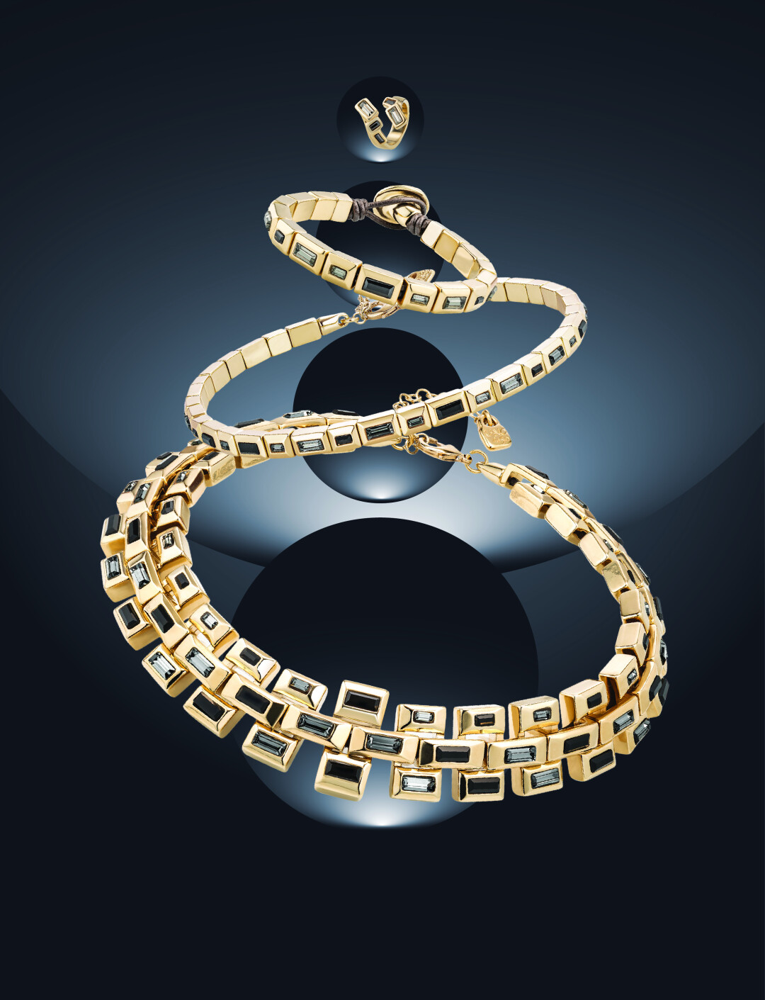 Зимняя капсула с таким названием появилась у мадридской марки в постоянной коллекции Instinct — серьги, браслеты, кольца и выдающееся колье Divine (50 экземпляров на весь мир!). Все украшения собраны ювелирами вручную из кристаллов Swarovski дымчатого серого и шоколадного цветов в багетной огранке — такую обычно используют при работе с сапфирами. Но оформлен каждый из них в отдельную солидную «раму» из позолоченного ювелирного сплава. Арт как он есть!
