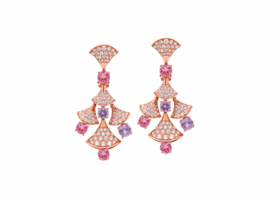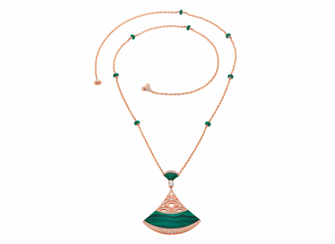 Римские ювелиры добавили в коллекцию Divas’ Dream несколько парадных новинок в той же узнаваемой форме веера, которую они несколько лет назад списали (не точь-в-точь) с мозаичных стен в термах Каракаллы. И только нынешней зимой стало очевидно: нет на свете более новогоднего мотива! «Раструб» малахитовой вставки на колье из розового золота так и напрашивается на «Елочка, гори», его цепочка-гирлянда с регулируемой длиной мигает бриллиантовыми бликами, а поддерживают настроение серьги-шандельеры с шарами разноцветных сапфиров.