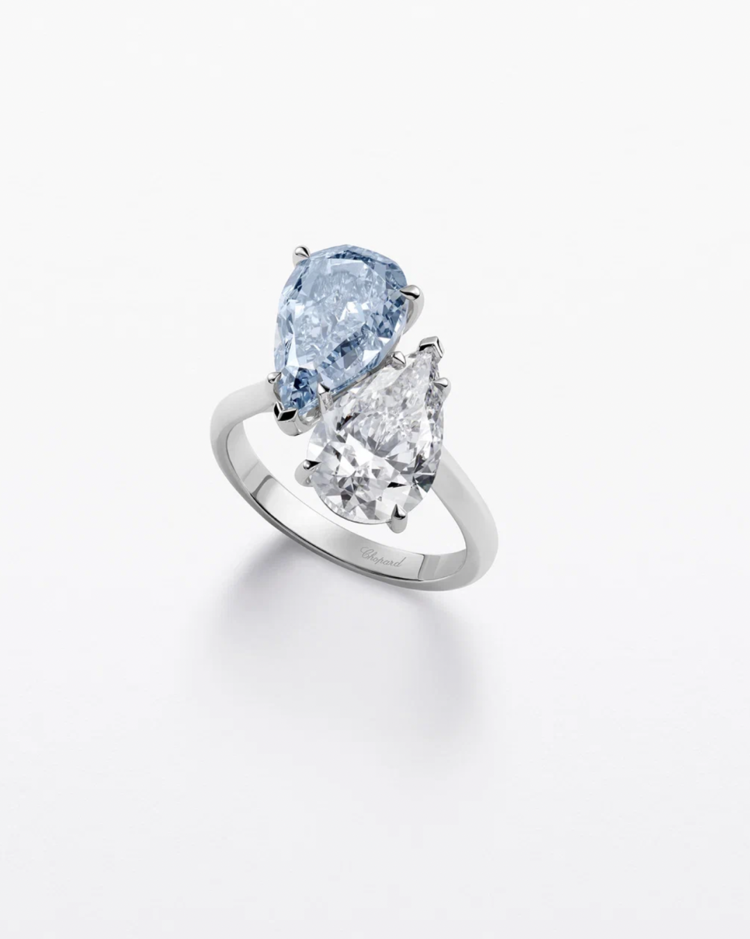 Хэдлайнер коллекции — Chopard Insofu – необработанный изумруд весом 6 225 карат, добытый в Замбии при строгом соблюдении этических критериев и норм контроля на всех этапах: от обработки до транспортировки. Еще один необычный камень — розовый бриллиант весом 10,88 карата (сопрезидент и художественный директор Chopard Каролина Шойфеле особо любит цветные бриллианты). Этот камень огранки «радиант» украсил кольцо из «этичного» золота с сертификатом Fairmined. Кроме этого, в новой коллекции ювелирного дома есть кольцо Toi & Moi с фантазийным бриллиантом насыщенно-синего цвета весом 4,22 карата и белым бриллиантом.