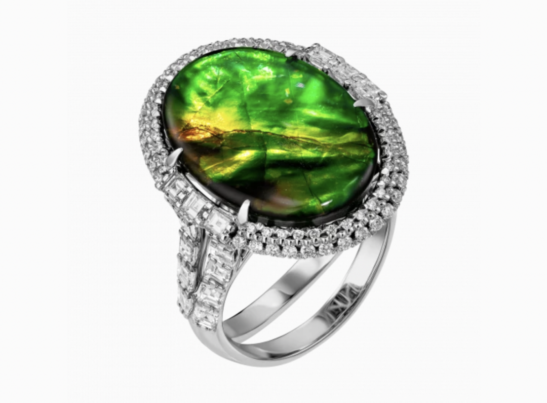 Перстень-амулет Maxim Demidov существует в единственном экземпляре и претендует на статус не только оберега, но и тотема. 66 бриллиантов обвивают мерцающий северным сиянием шестикаратный канадский аммолит: похожие камни, образовавшиеся из перламутра панцирей древних моллюсков, носили шаманы Северной Америки.