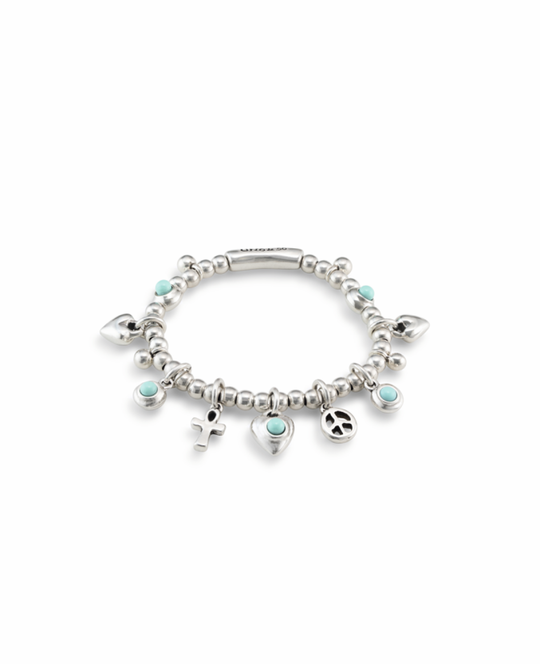 Браслет с серебром из коллекции Protected от испанцев UNOde50 передает привет всем летним фестивалям сразу: миниатюрные брелоки-символы с бирюзовыми кристаллами так и просятся на VK Fest и «Архстояние».