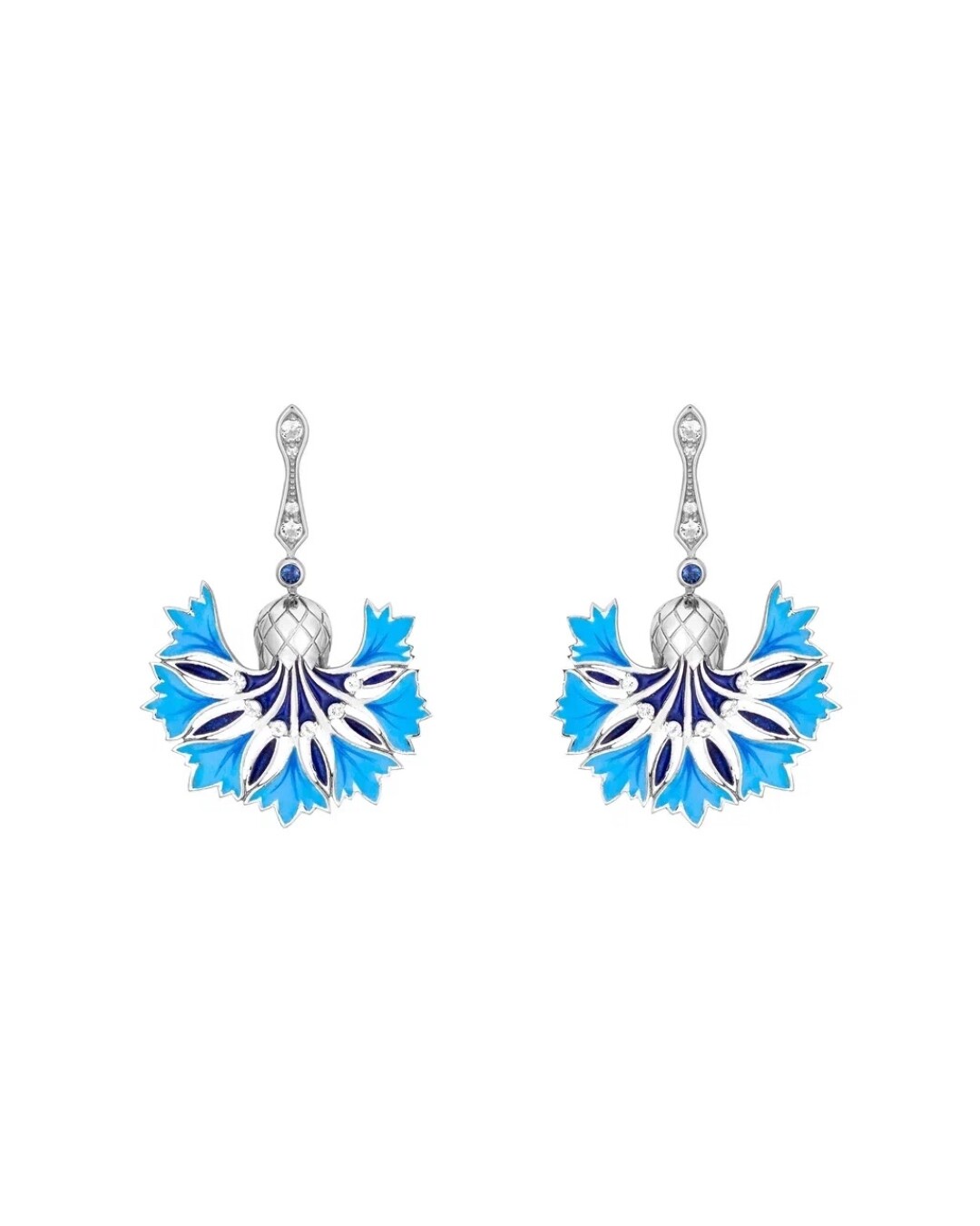 Серьги из стерлингового серебра Axenoff с сапфирами, бесцветными топазами и семью эмалевыми васильками на каждой — языческий оберег на ночь летнего солнцестояния (да и на любую другую тоже!).