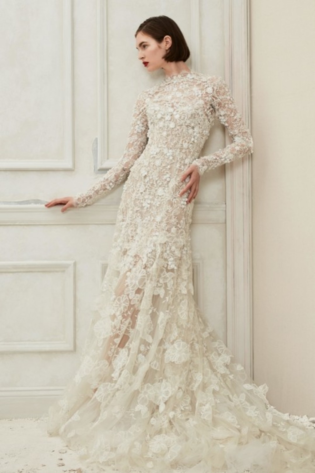 На помощь придут модели платьев с длинными рукавами, которых было много в свадебных коллекциях этого сезона.