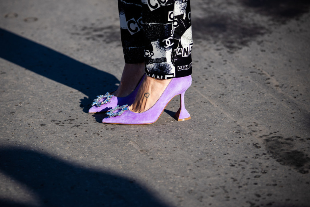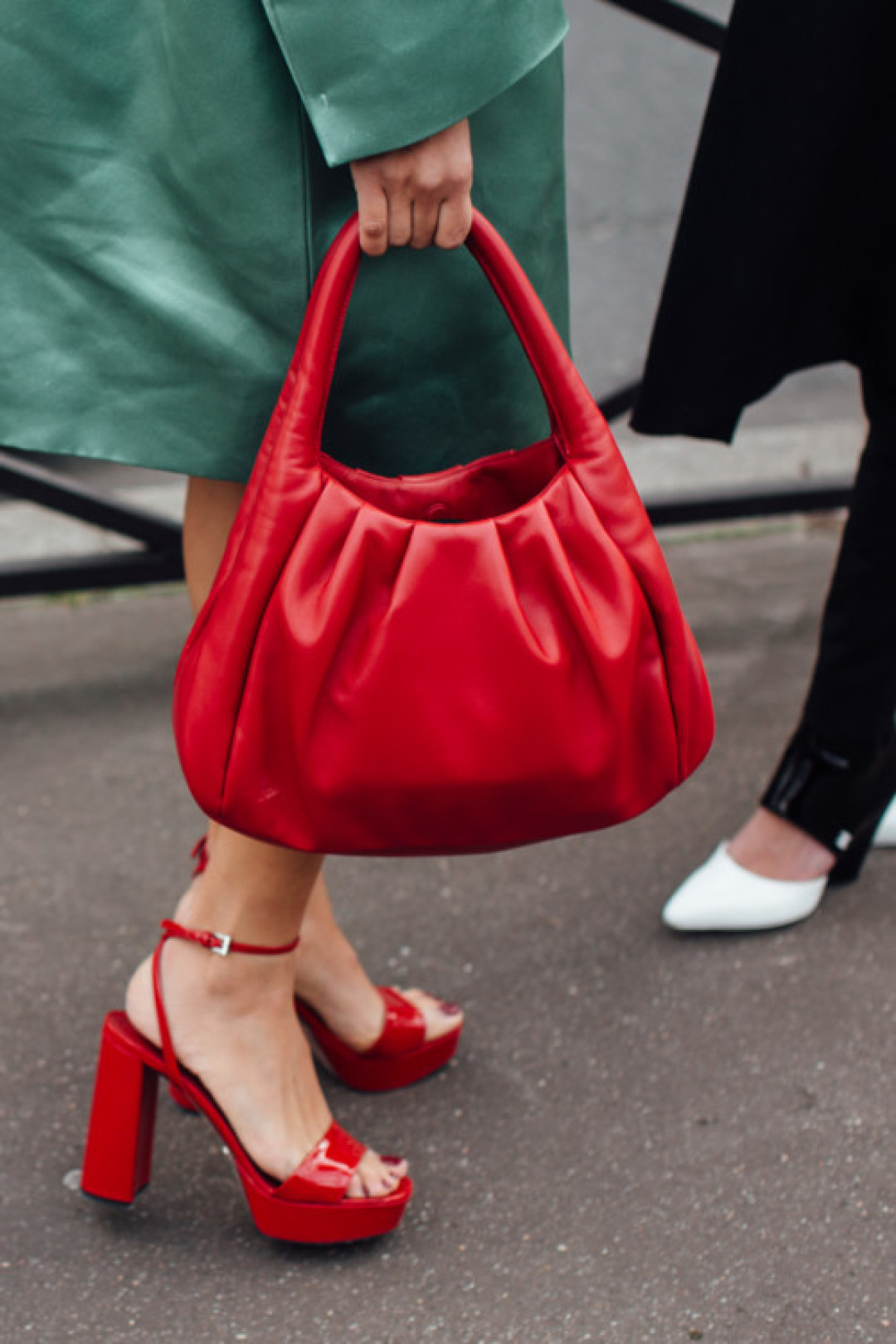 Стильная пара с фантазийной пряжкой на вечер может стать смелым акцентом к базовым джинсам днем. Среди streetstyle-фаворитов - глиттер, атласный материал, сочетание в обуви цвета фуксии и белой броши.
