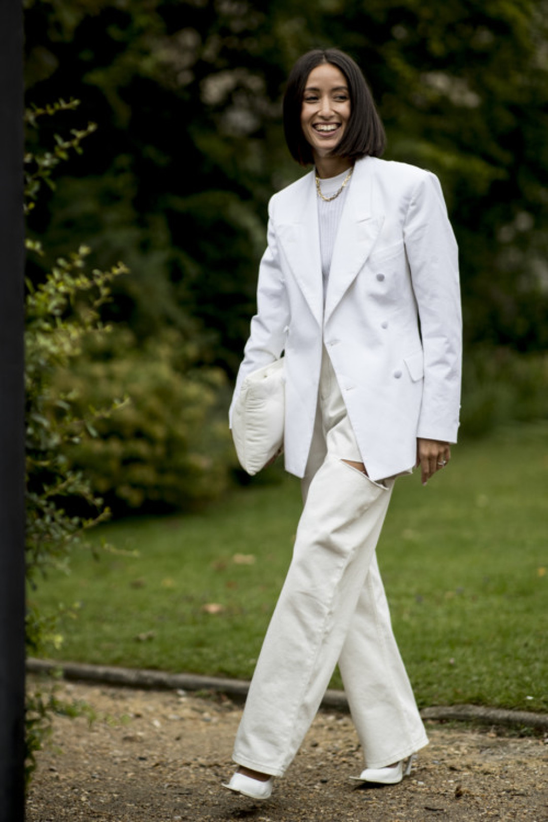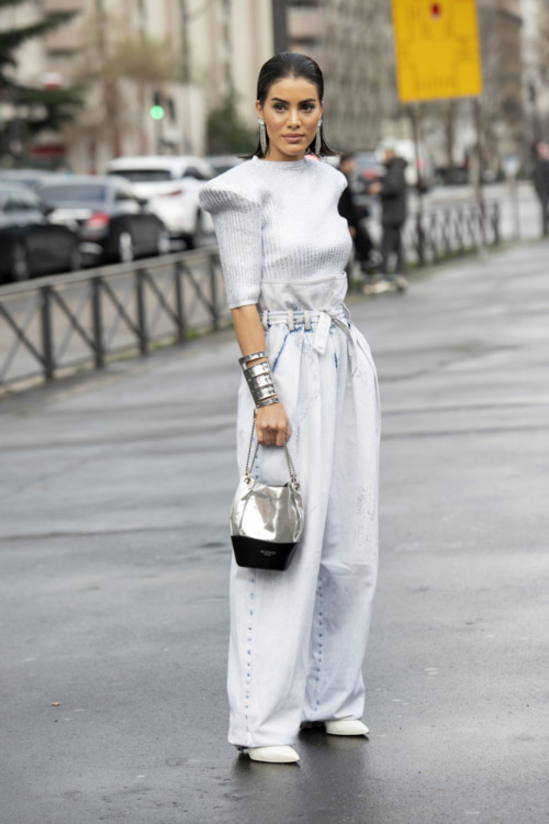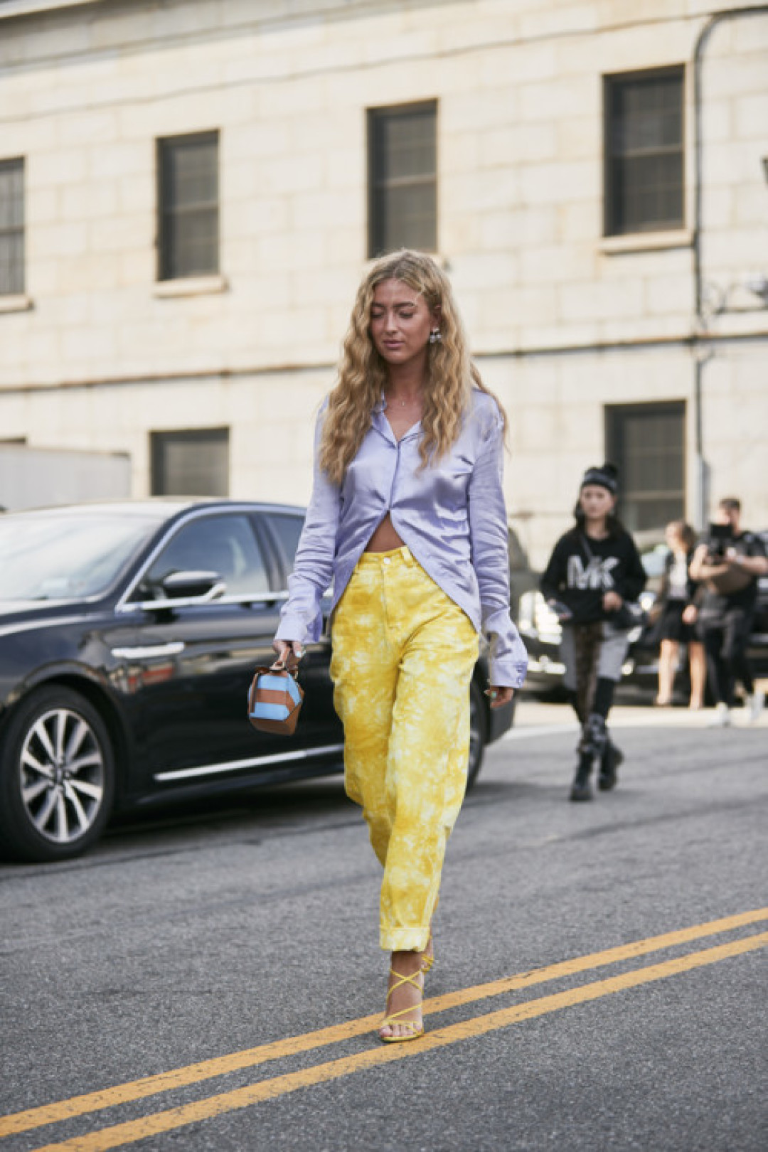 Streetstyle-снимки радуют жизнерадостными оттенками денима на модницах по всему миру, пора доставать любимую яркую пару, комбинируя с белыми футболками, а также женственными блузами, отправляться в новый летний день.