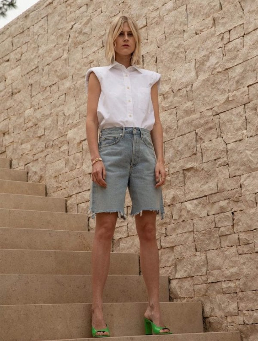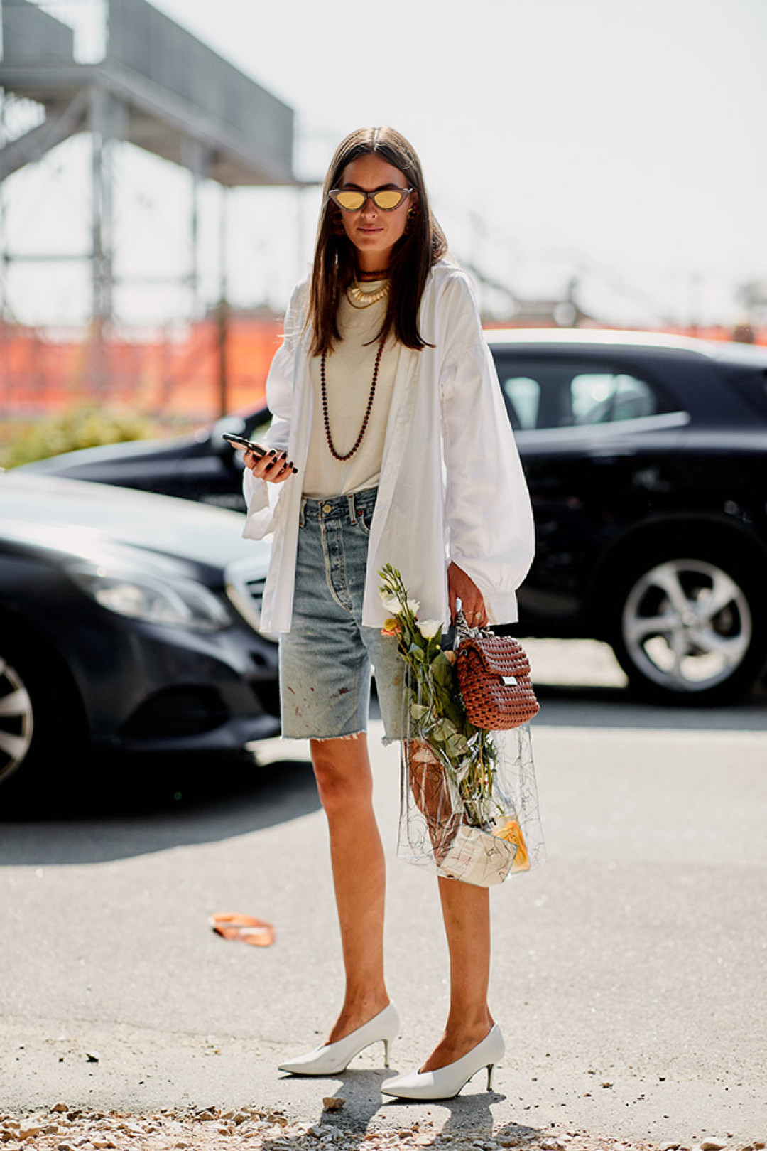 Для начала определимся, что в этом сезоне предпочтительнее выбрать деним. Прошлым летом мы влюбились в бермуды, благодаря дебютной коллекции Дэниела Ли для Bottega Veneta. В этом году они стали осознанным модным выбором наравне с основными силуэтами теплого сезона, а круизная посткарантинная коллекция Chanel лишь укрепила их позиции. Разберемся, с чем сочетать бермуды, рассматривая streetstyle-образы модниц.