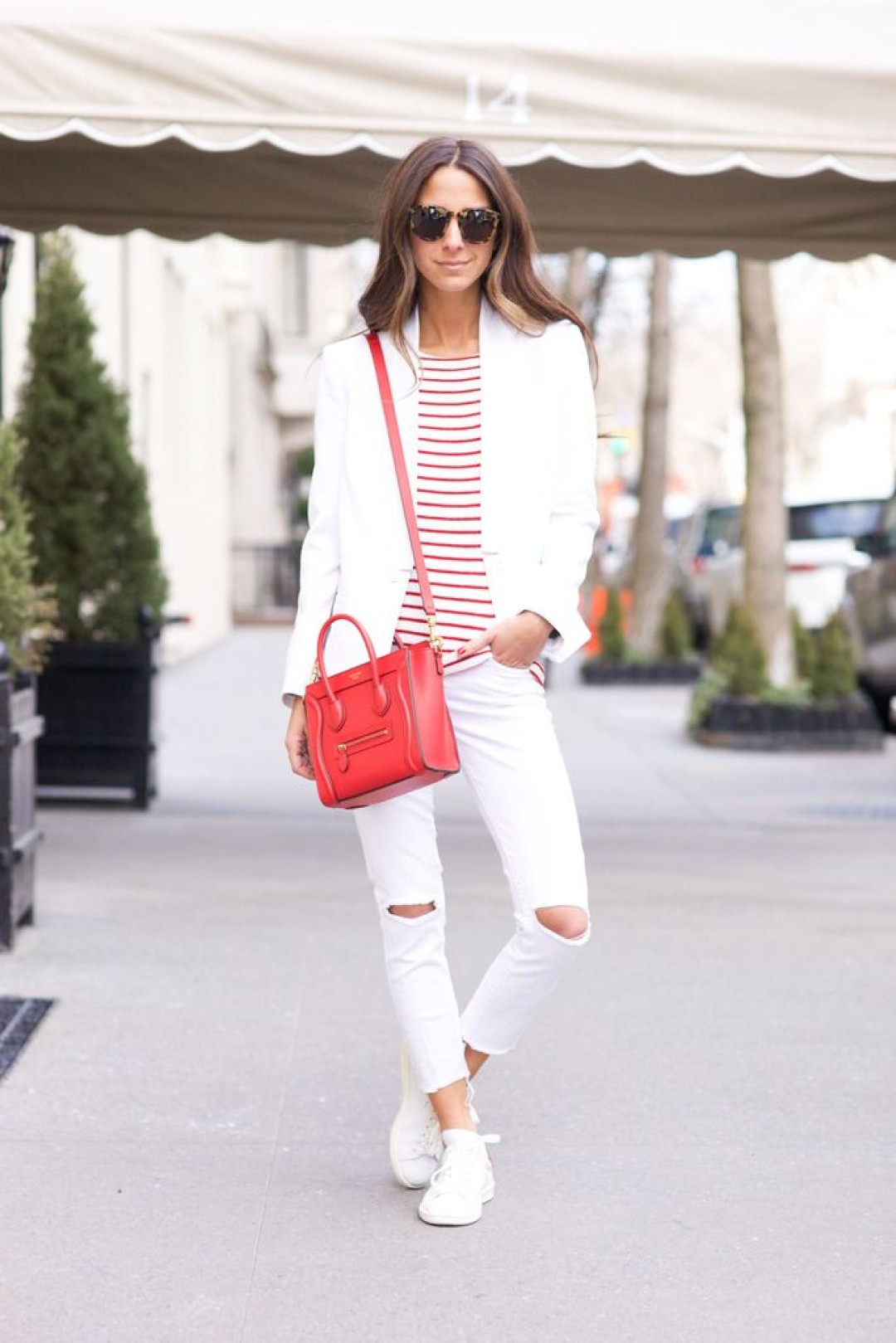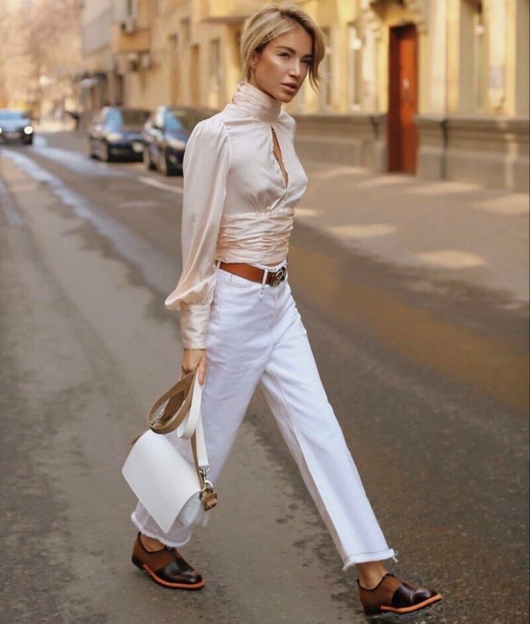 Бархатная осень на побережье продлевает возможность носить летние образы до октября. Собрали самые красивые streetstyle-образы с белыми джинсами. Они универсальны в своей простоте и многообразии сочетаний, дополняйте их футболками, топами, открытыми босоножками или ботинками, а также монохромными жакетами и стильными тренчами.