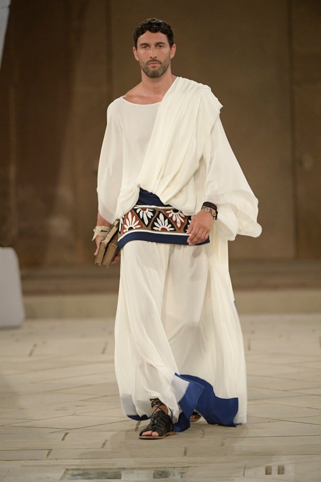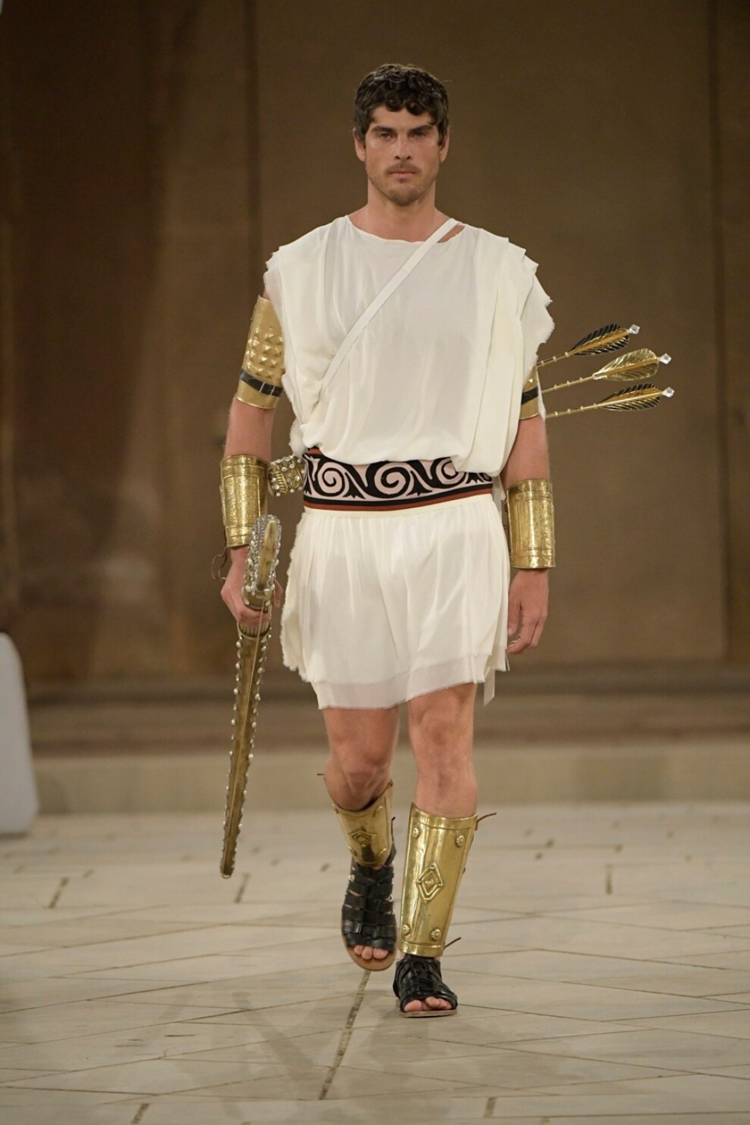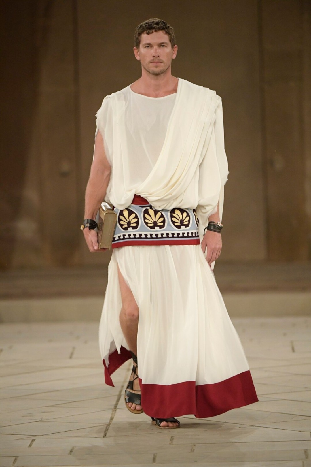 - Мужской античный костюм открывал кутюрный показ. Модели выходили в образах греческих богов - Зевса, Геркулеса и Аполлона.