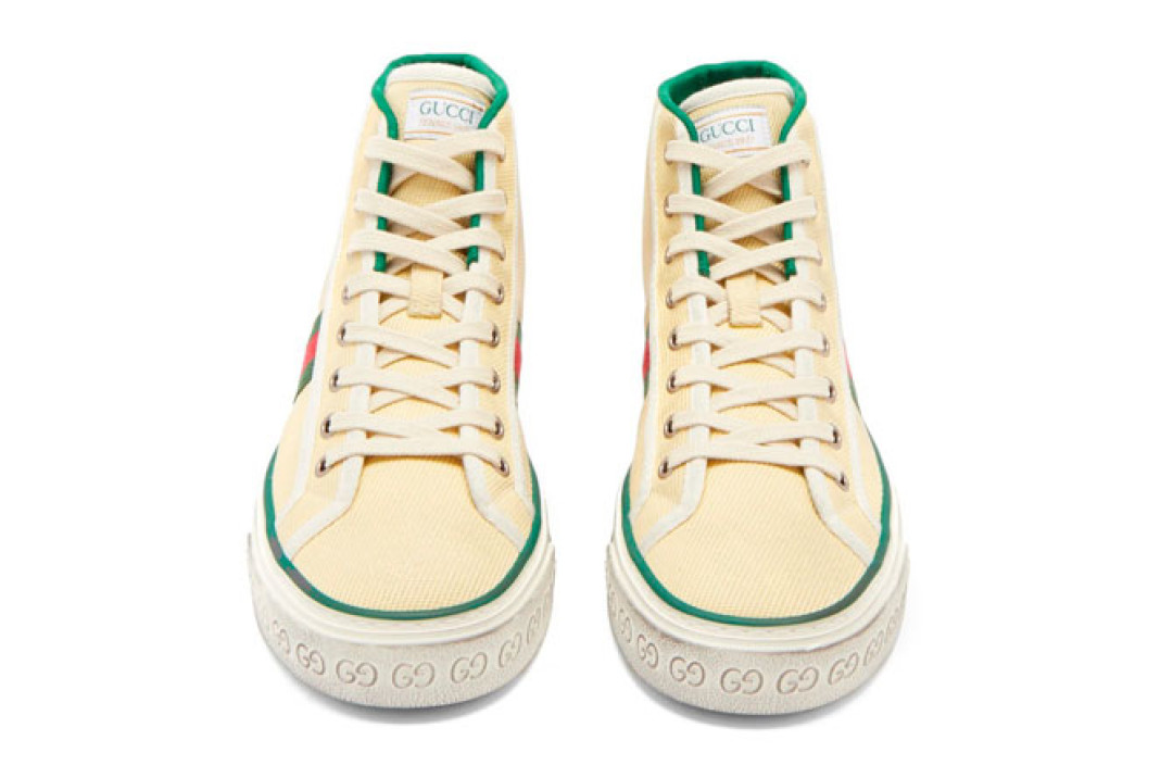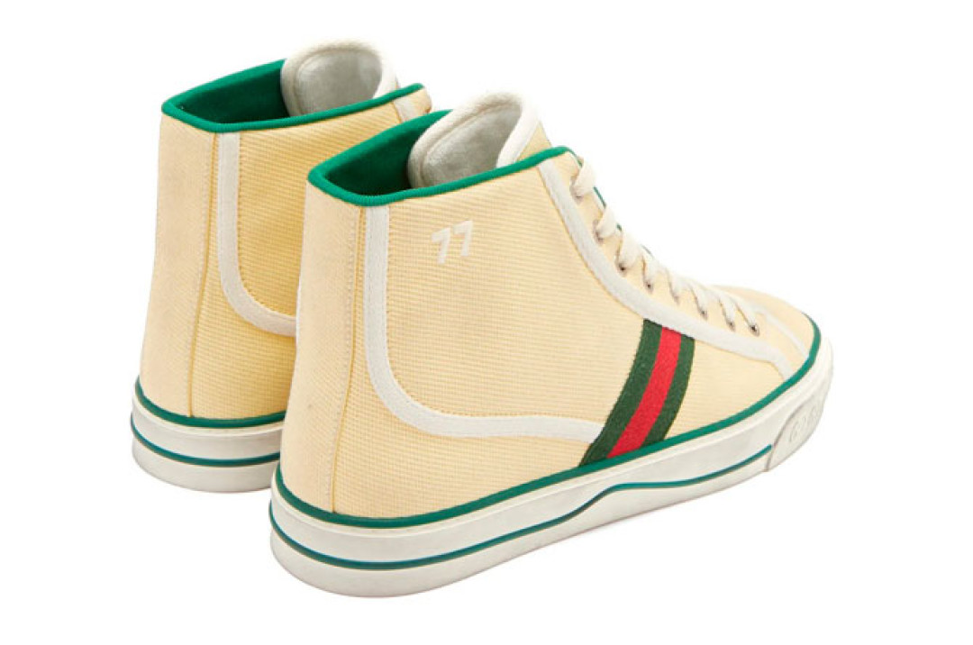 Высокие кеды Gucci из линейки Tennis 1977 теперь новой формы и украшены архивными деталями.