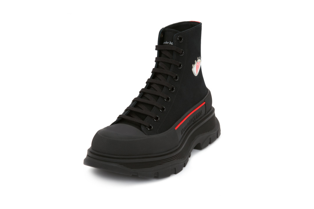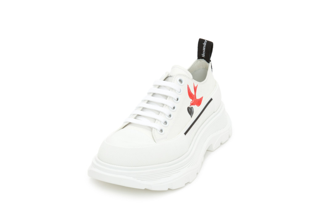 В преддверии Дня святого Валентина Alexander McQueen выпустил специальную капсульную коллекцию женской обуви. В нее вошли кроссовки, ботинки с декором, отсылающим к символам праздника влюбленных и к эстетике британского бренда.