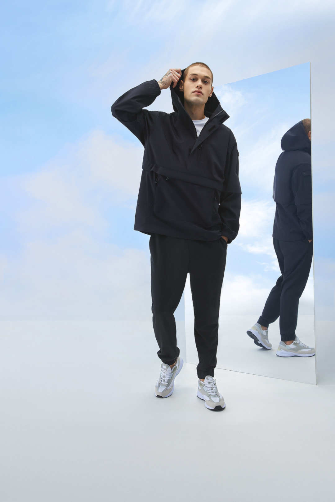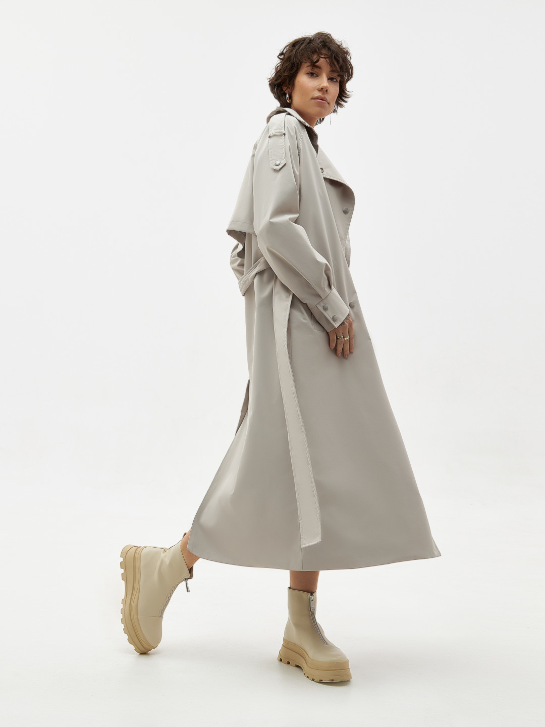 В капсульной коллекции представлены мужские и женские модели. В линейке можно увидеть классический тренч, свободную укороченную куртку в песочном и черных цветах.