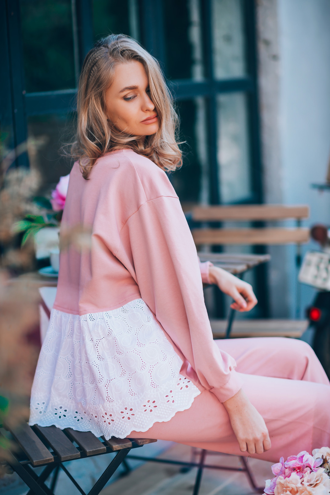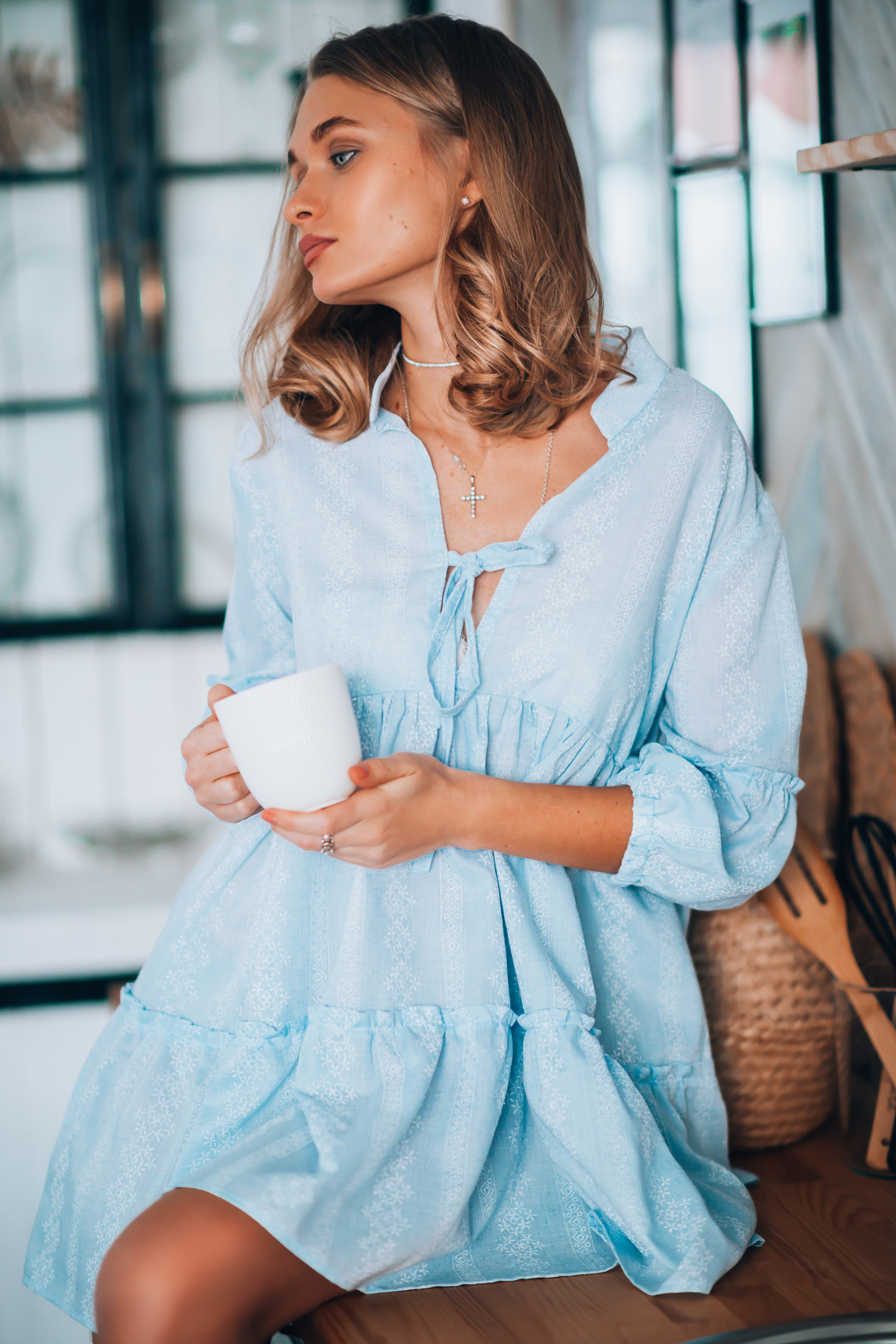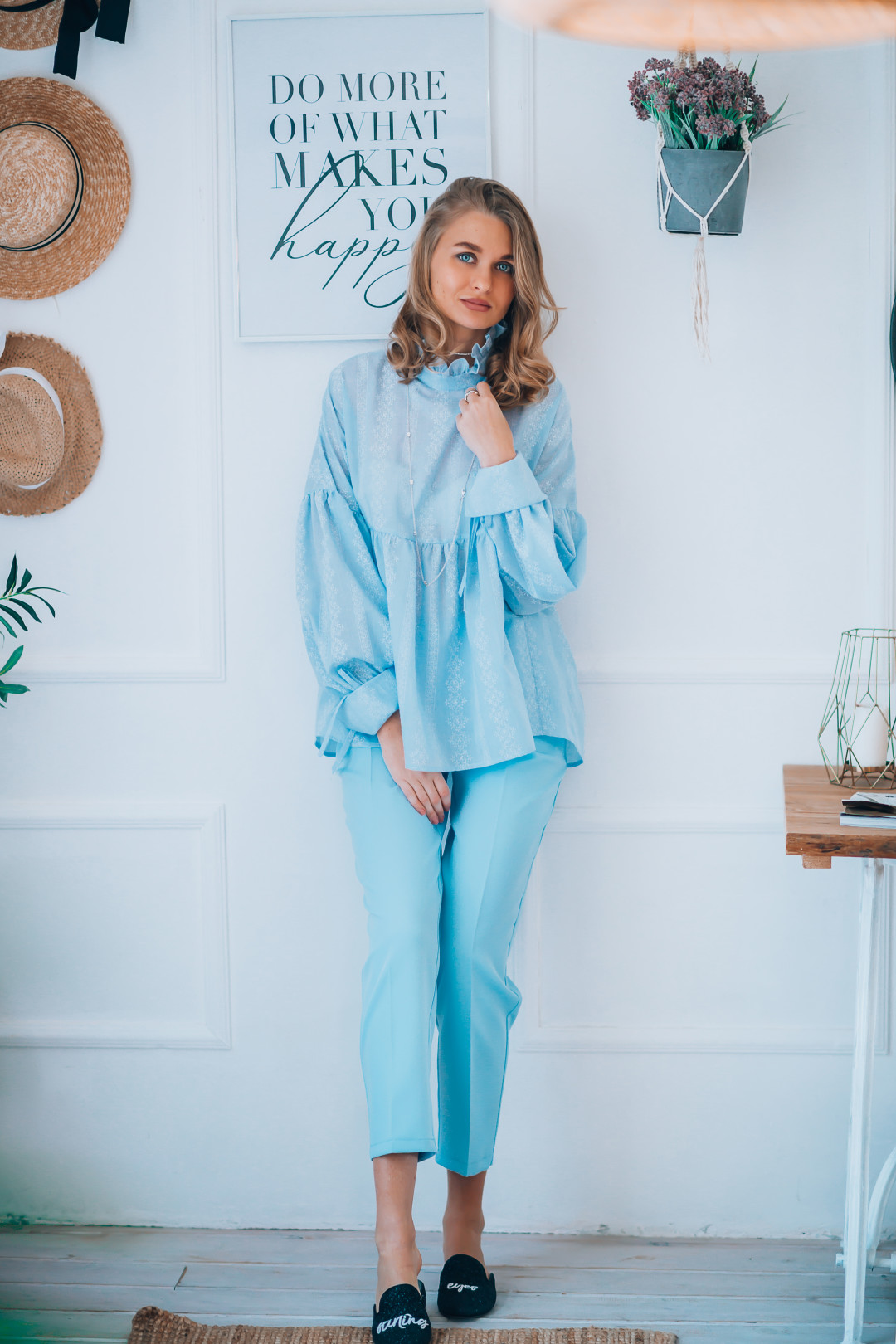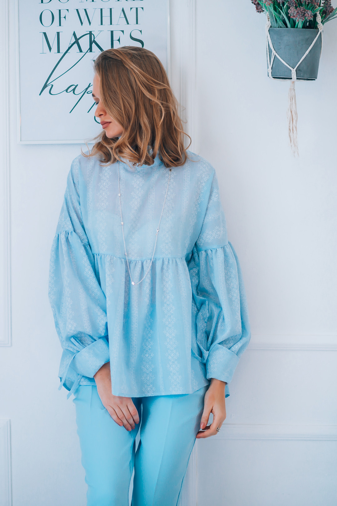 TWICE Studio: Мы постарались добиться легких и расслабленных форм, большенство силуэтных линий размыто. Цвета- конечно же пастель, нежно-голубой оттенок, молочно-белый и все это завершает цветочный розовый! Фактура ткани от гладкого крепа, до рельефного воздушного батиста!