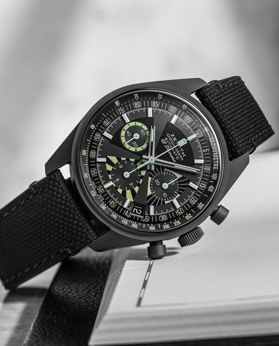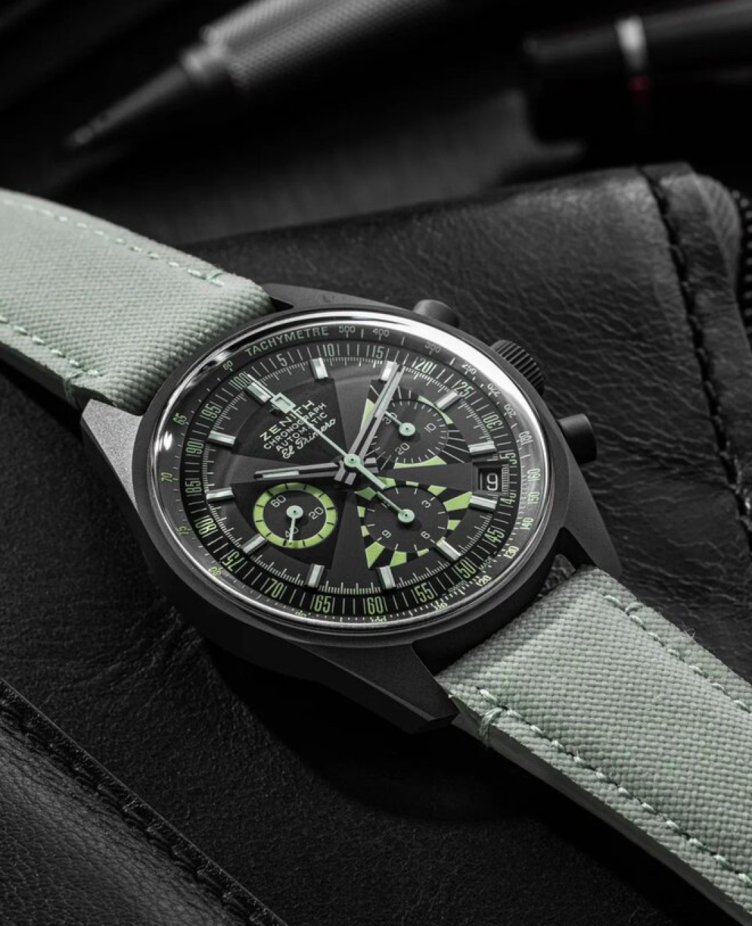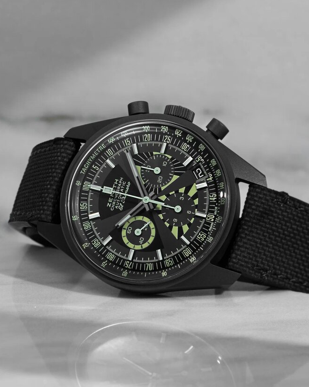 Новая модель Zenith — это интерпретация одних из самых желанных винтажных часов бренда — El Primero G383, названных коллекционерами «Poker Chip». Свое прозвище часы получили за циферблат с градацией цвета, напоминающей покерную фишку. Впервые El Primero G383 были представлены в 1969 году.