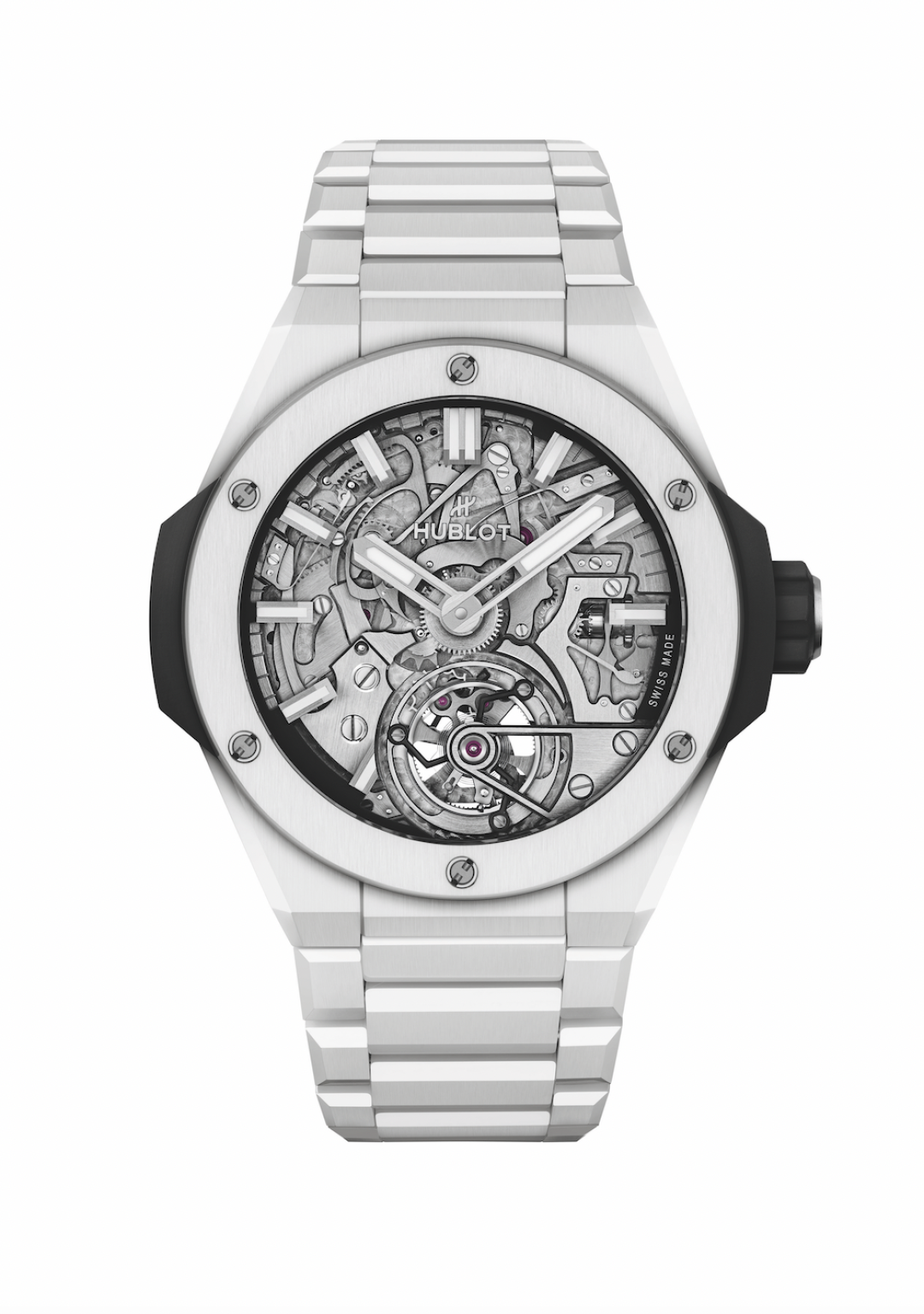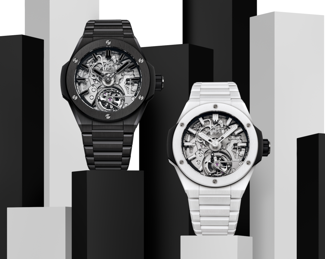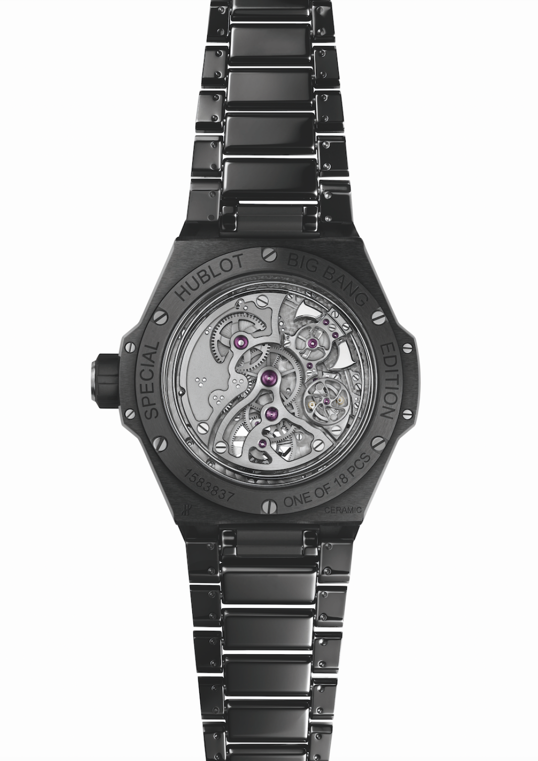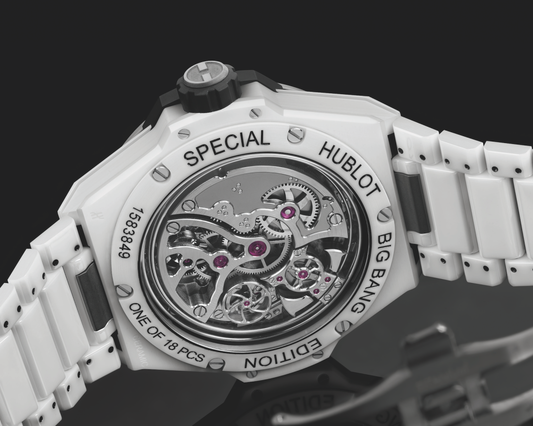 Hublot представили 36 часов диаметром 43 миллиметра, одна часть которых выполнена из черной керамики, другая — из белой. Эти часы вошли в коллекцию Integral Ceramic, впервые представленную в 2020 году. Механизмы серии полностью сделаны из керамики: корпус, браслет, безель и задняя крышка. Турбийон Big Bang Integral Minute Repeater Ceramic изготовлен вручную, как это принято у Hublot. Он заключен в калибр MHUB801 с ручным заводом, обеспечивающим 80-часовой запас хода, то есть более трех дней.