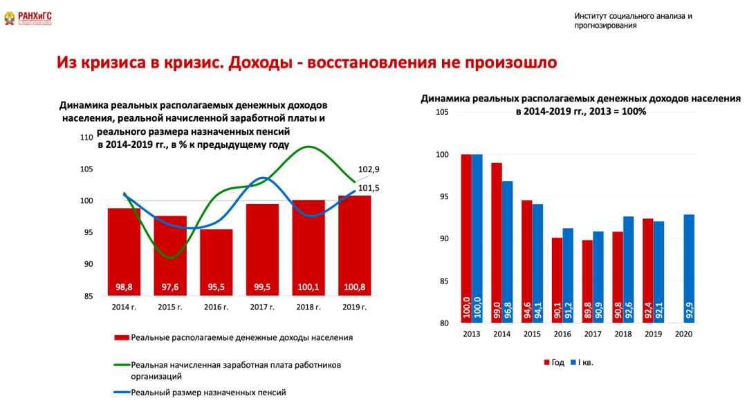 Мы оставим в стороне кризис 2009-2010, он был специфическим, потому что был порожден не столько внутренними проблемами, сколько мировым экономическим кризисом. А кризис, последовавший за 2014 годом, эти уроки нам дает. Почему? Потому что он был затяжным, и его социальные последствия проявляются в течение многих лет, и, увы, не были преодолены даже к началу 2020 года.