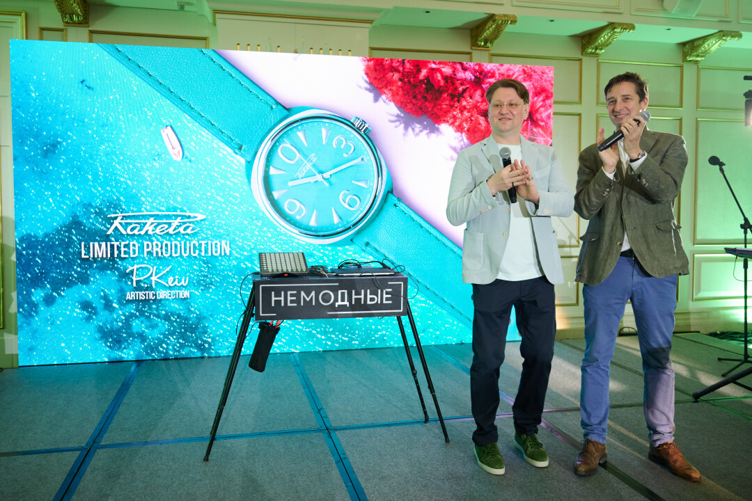 Закрытая презентация по случаю выпуска новой модели часов Raketa Big Zero Azur Blue состоялась в столичном отеле The Carlton Moscow. Показ для гостей вечера провели CEO Omoikiri, автор часового ютуб канала Павел Кейв и директор завода «Ракета» Дэвид Хендерсон-Стюарт.